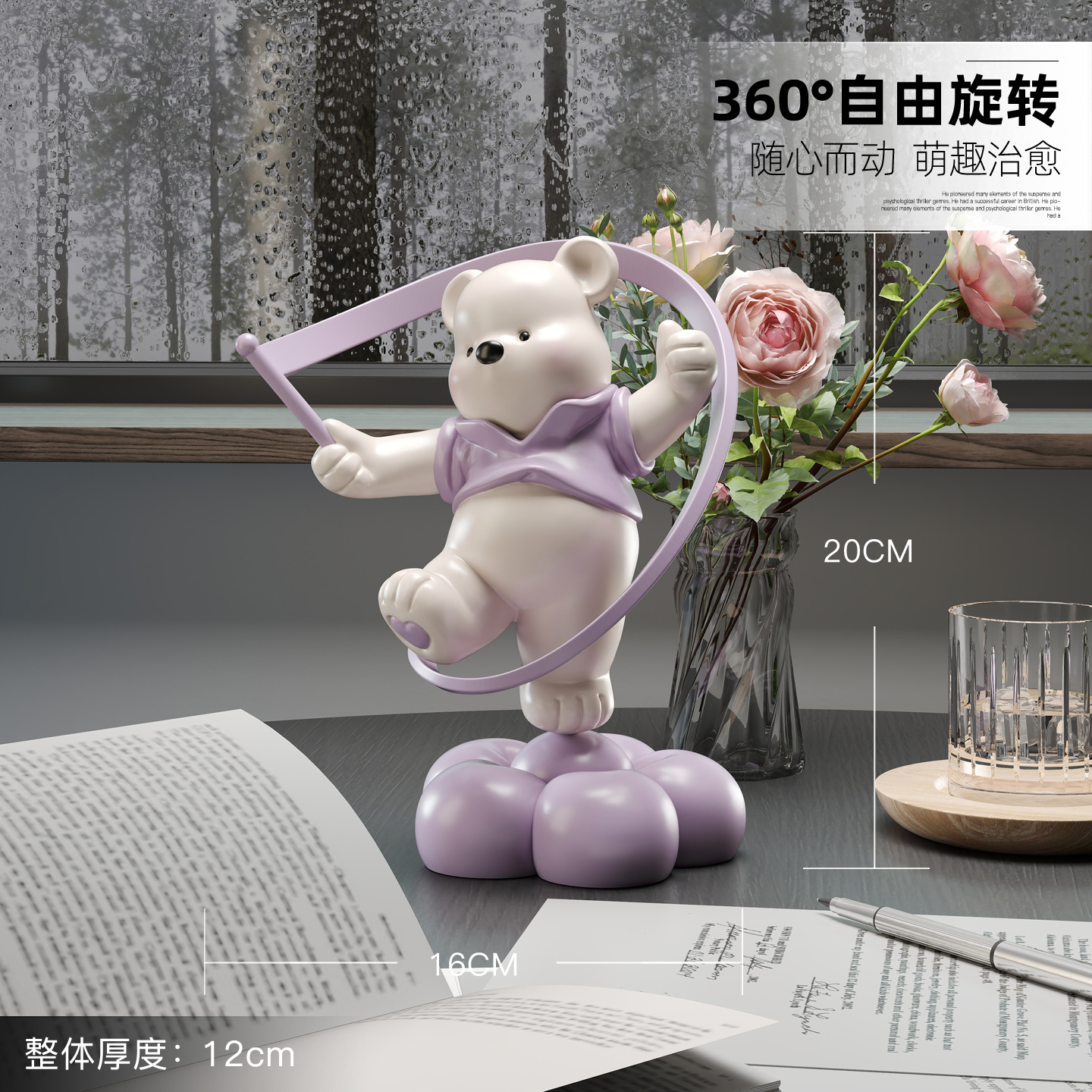 可爱小熊桌面摆件自动旋转创意装饰品办公室网红解压神器生日礼物