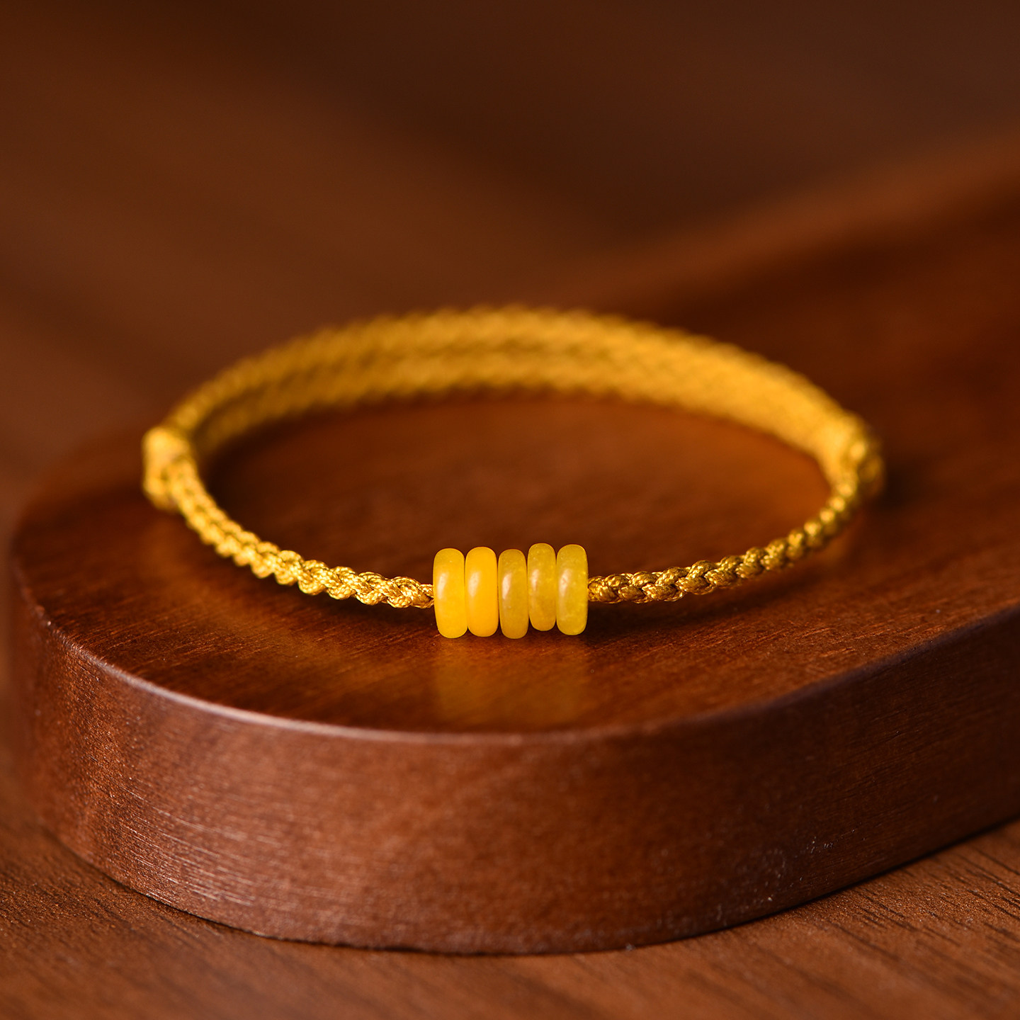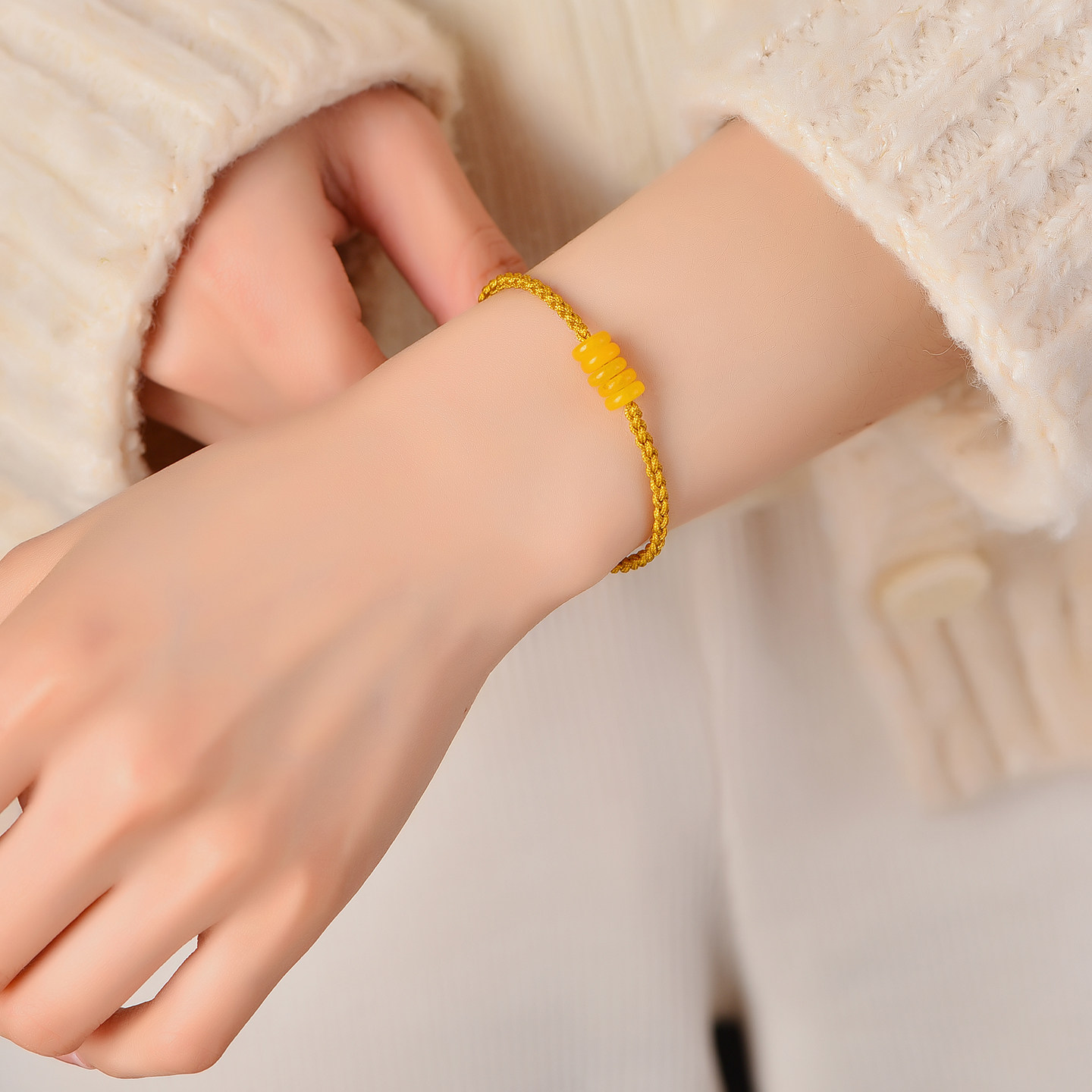 天然黄玛瑙手链脚链男女黄玉髓转运珠本命年平安手工编织黄色手绳
