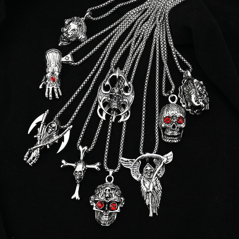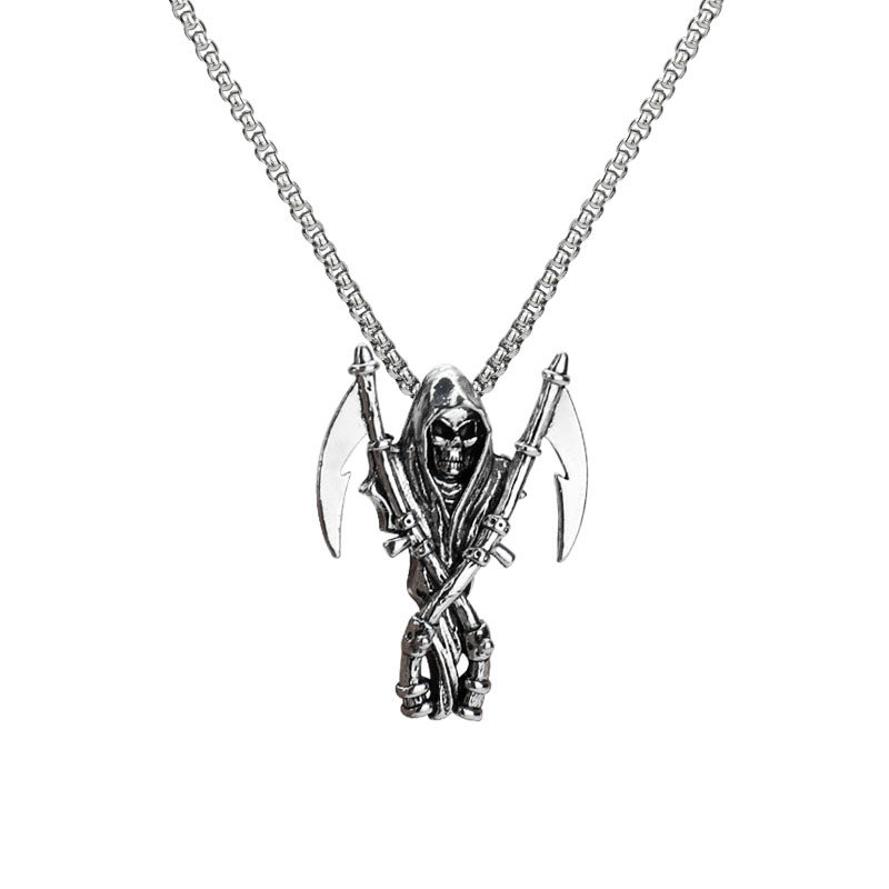 死神骷髅项链时尚冷淡风蹦迪潮牌欧美毛衣链配饰霸气百搭吊坠男