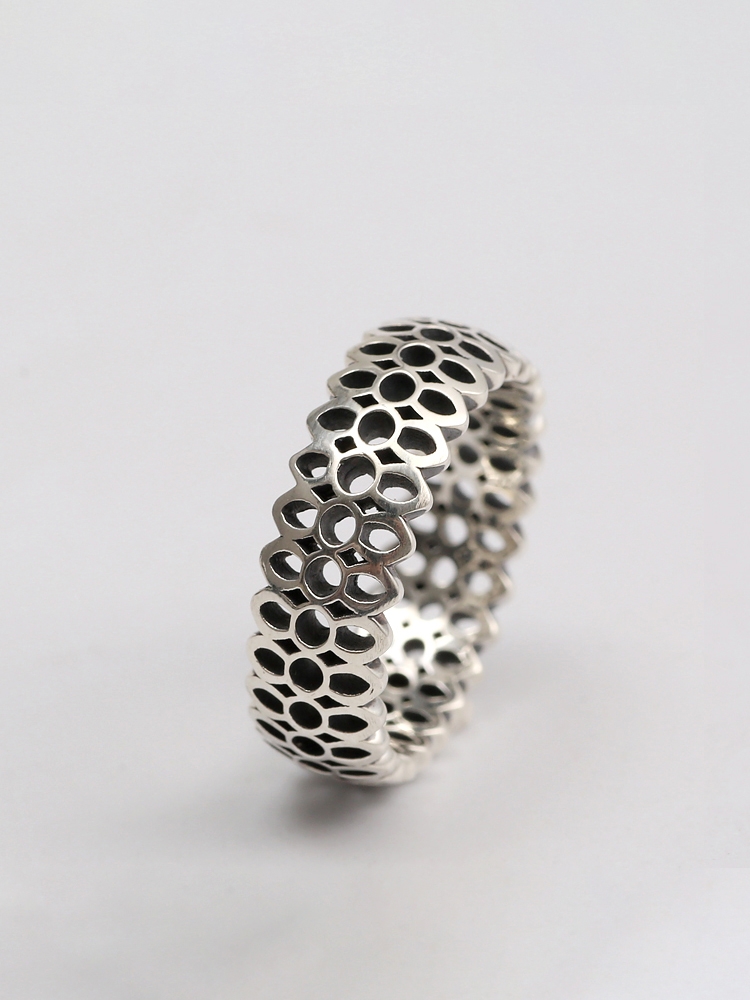 三沐饰家goodart小号樱花情侣款纯银925满花戒指潮男女戒银饰
