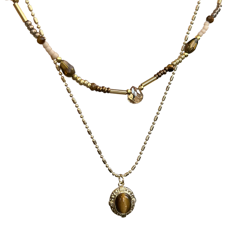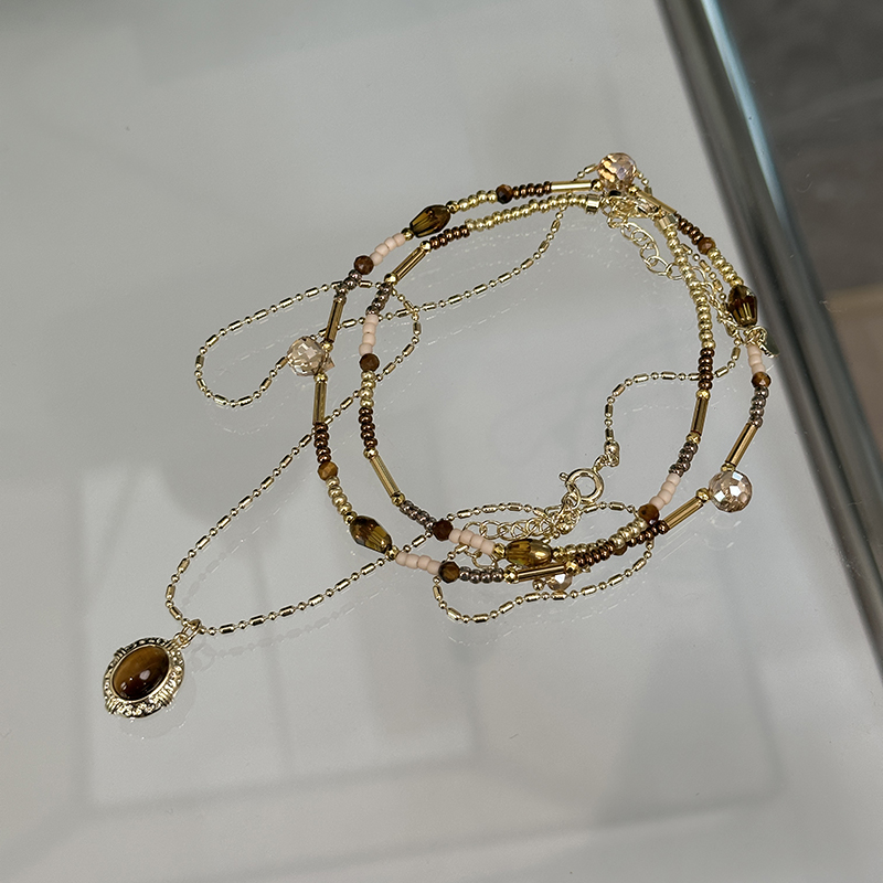 方糖家 美拉德虎眼石叠戴咖色串珠项链小众轻奢女款2025新款颈链