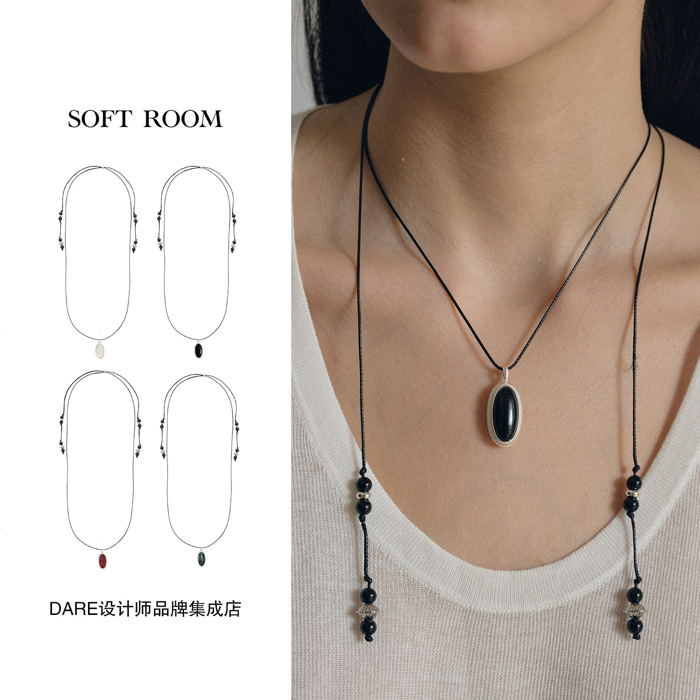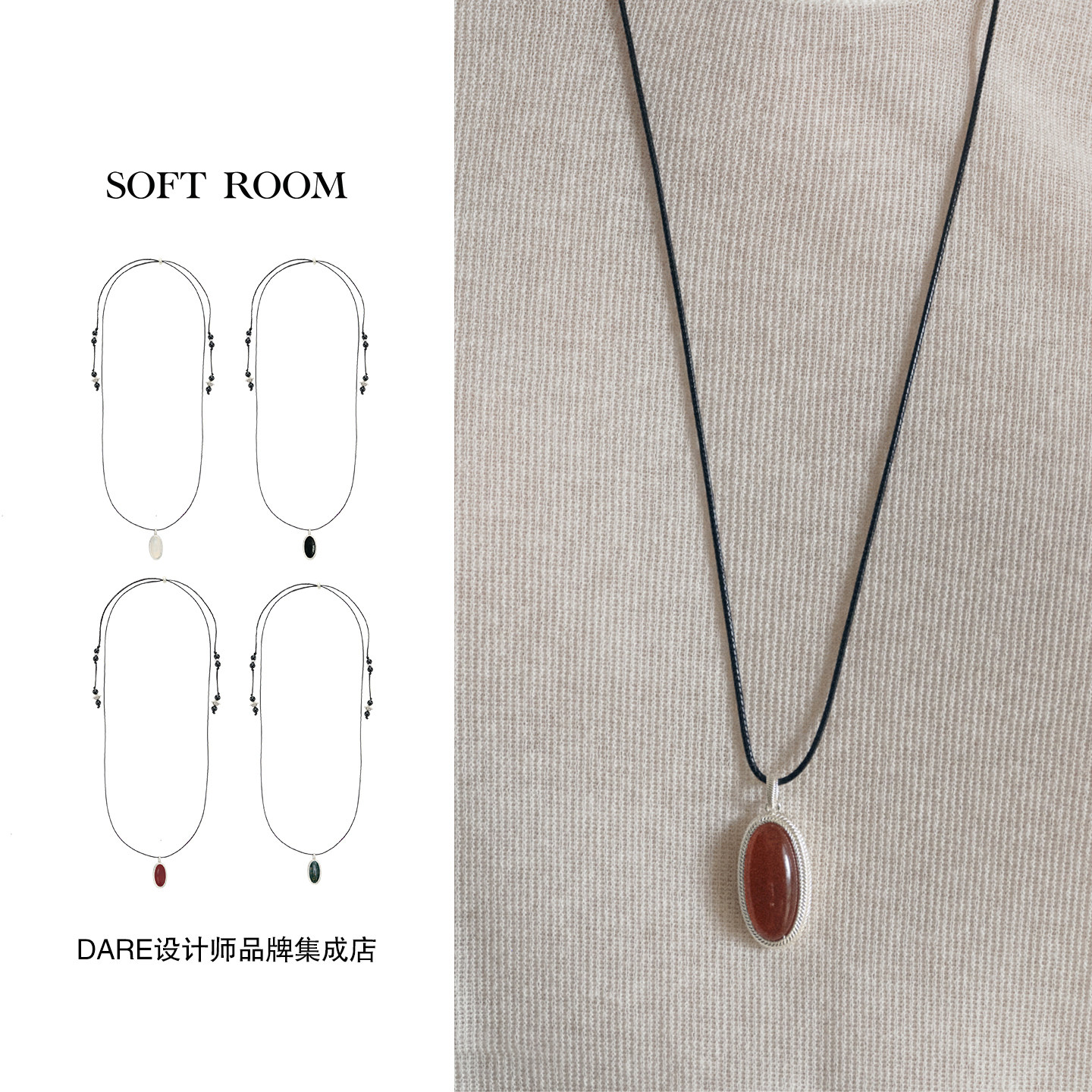 SOFT ROOM 斜纹包边玉石双面项链天然石抽绳民族风小众原创设计女