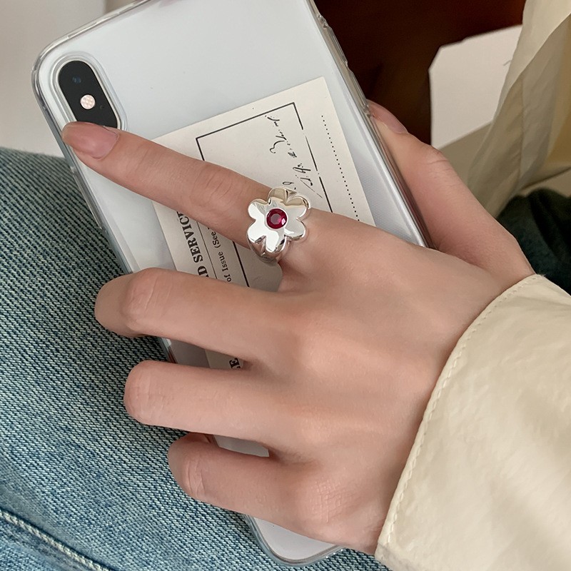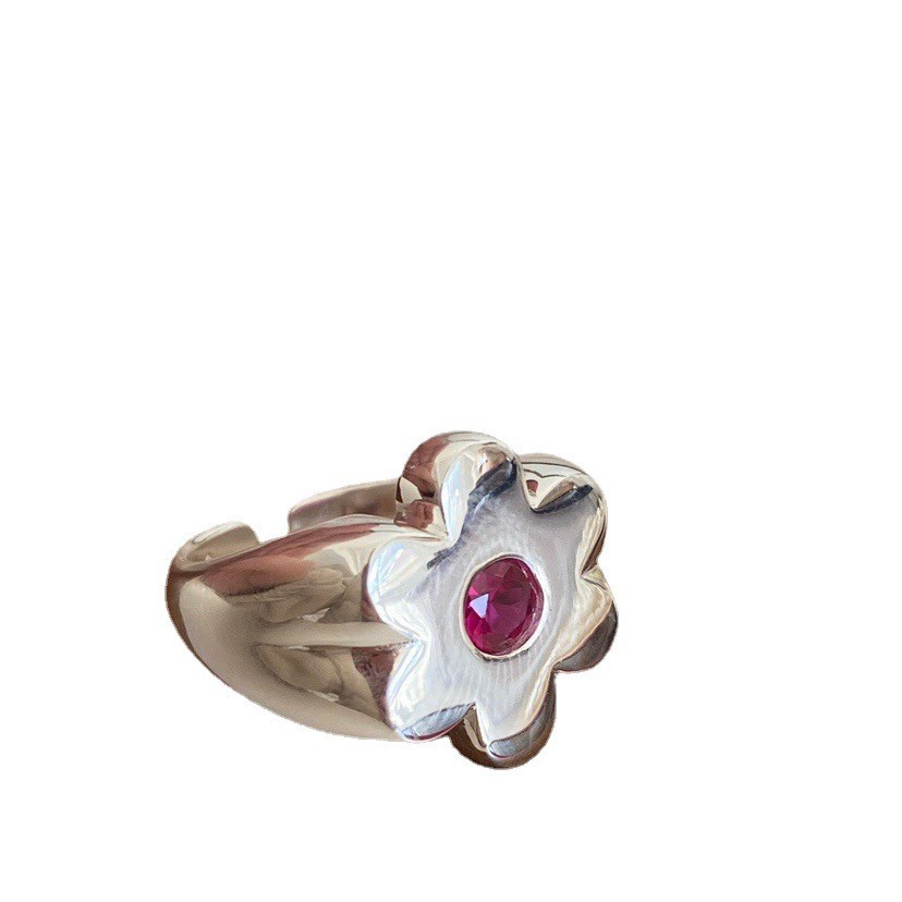甜美花朵戒指女个性重工宽边时尚开口指环ins风小众百搭食指戒潮