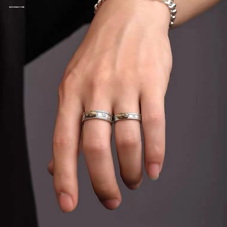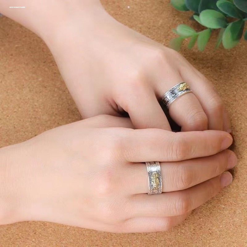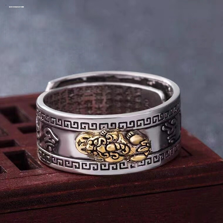 貔貅S925银戒指男女活口算盘可调节霸气方戒中国风