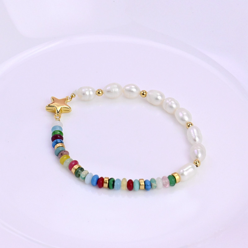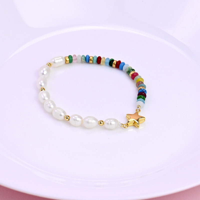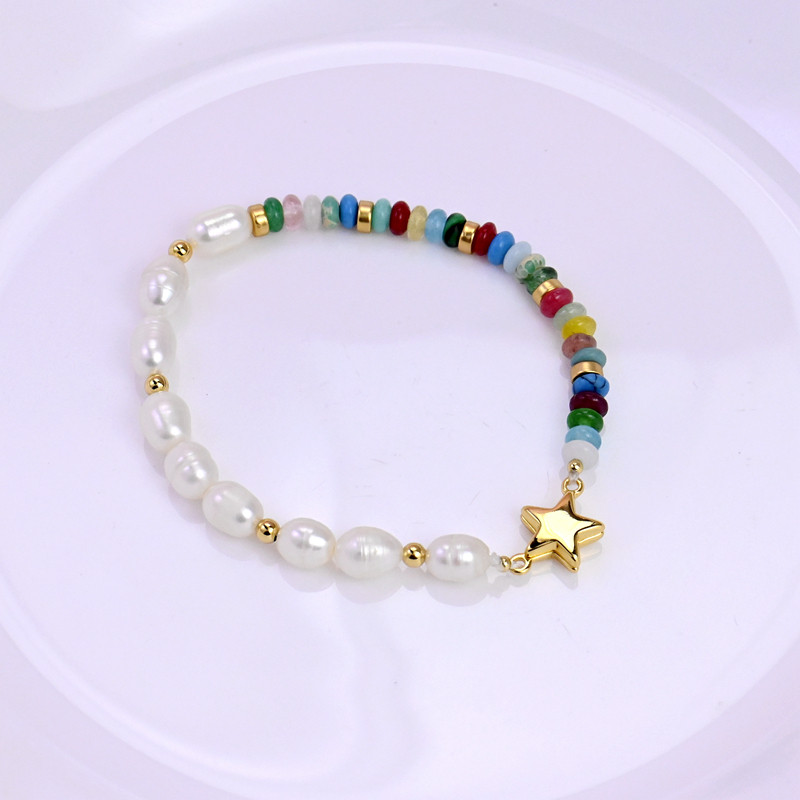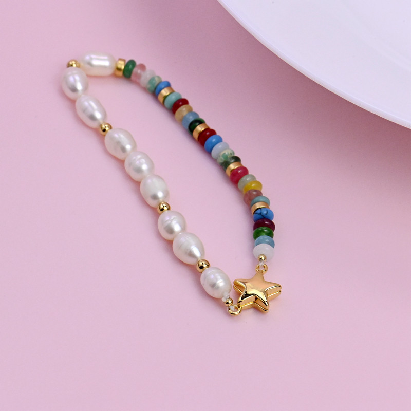 天然巴洛克珍珠彩色石算盘珠星星磁铁搭扣手链手环轻奢高级百搭款