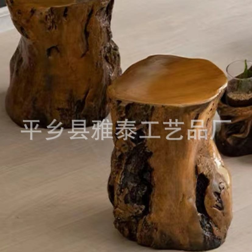 户外庭院阳台原木树桩桌椅树脂仿根雕木桩凳子圆木墩凳底座圆木凳