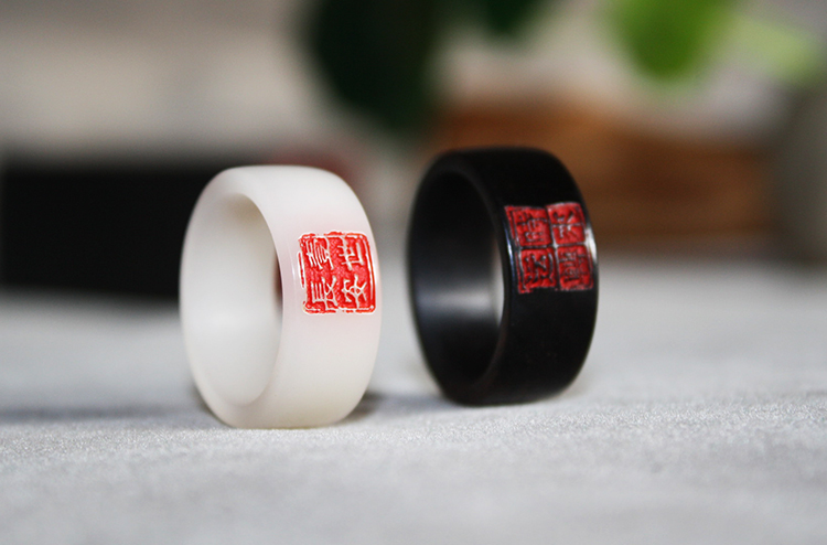原创白玉菩提定制刻字印章戒指檀木手串跑环情侣生日礼物小众饰品