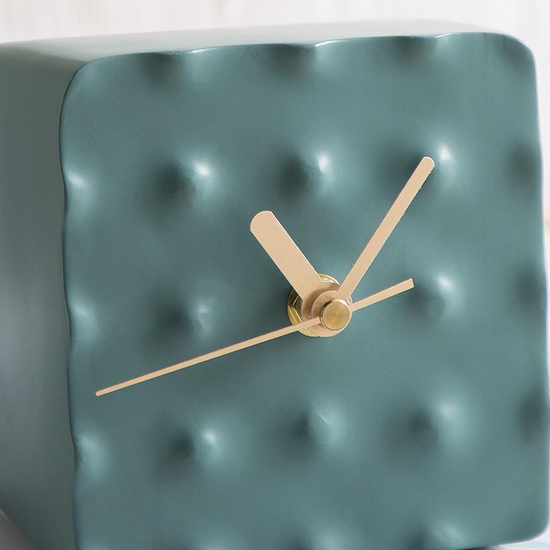 几何形座钟摆件树脂材质工艺品豆沙绿桌面立钟陈设家居简约创意
