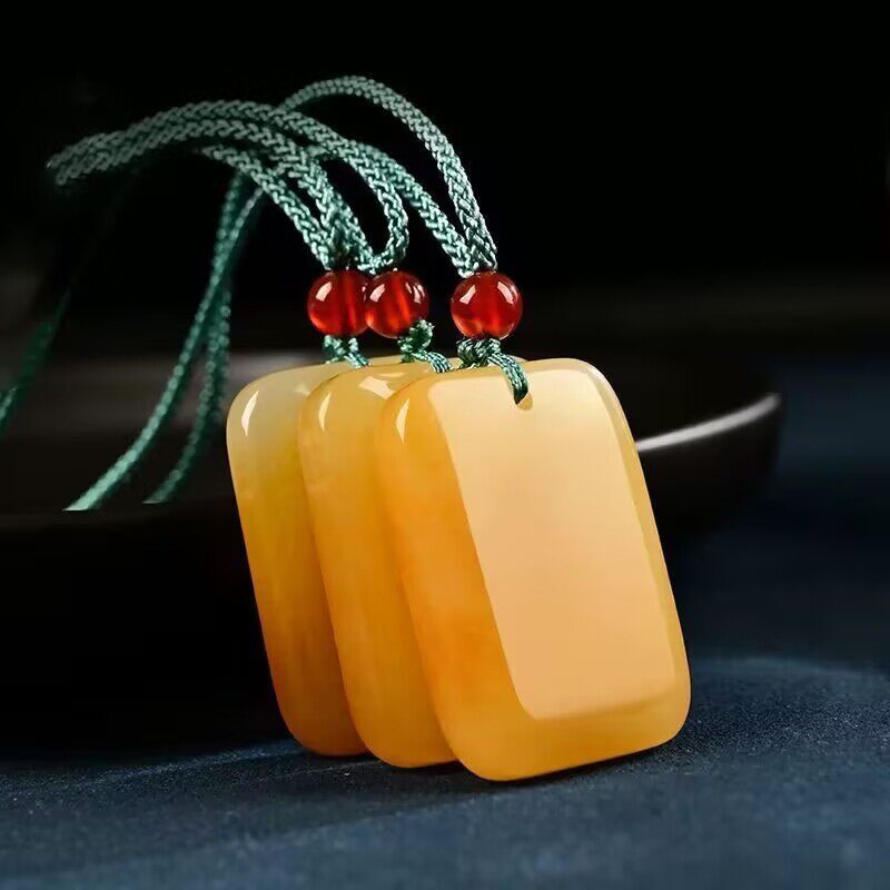 天然黄龙色玛瑙玉平安牌和田色黄玉平安无事牌吊坠毛衣链挂坠男女