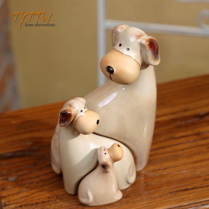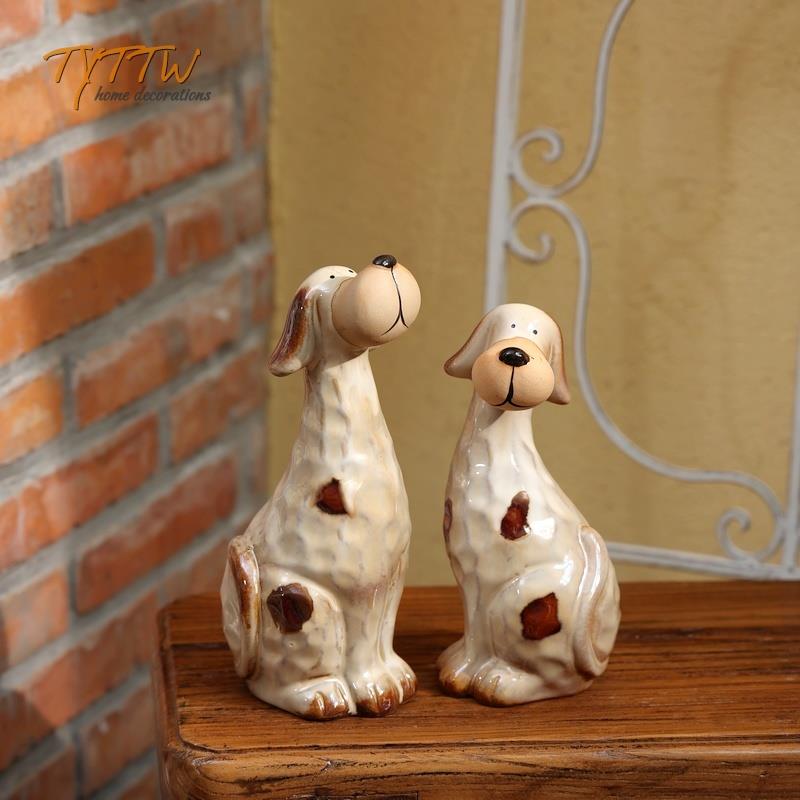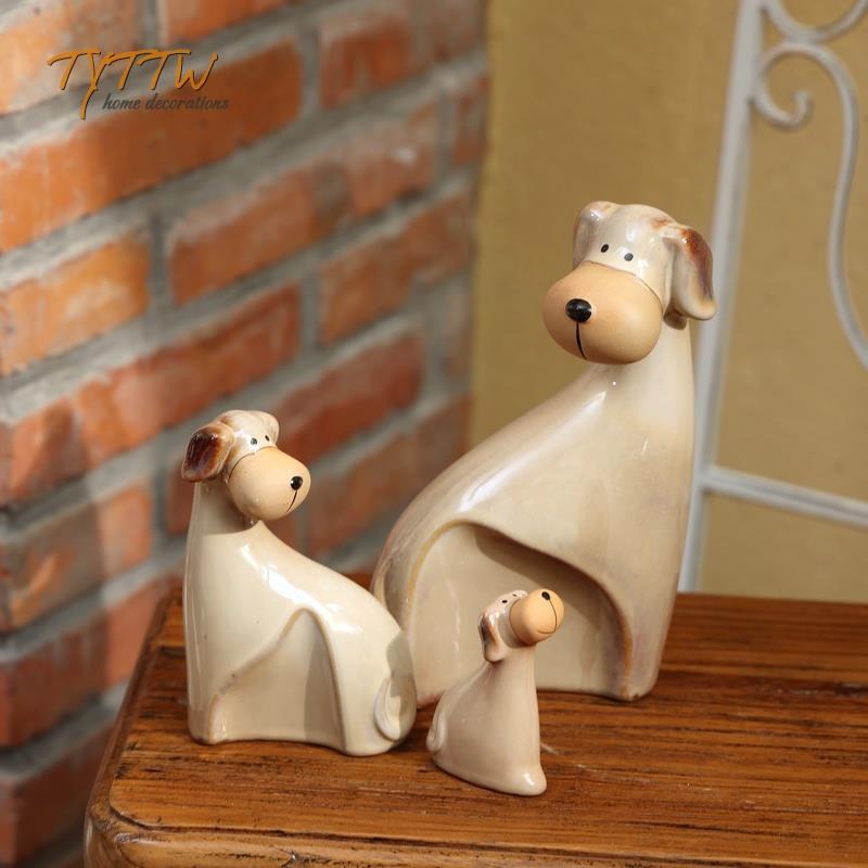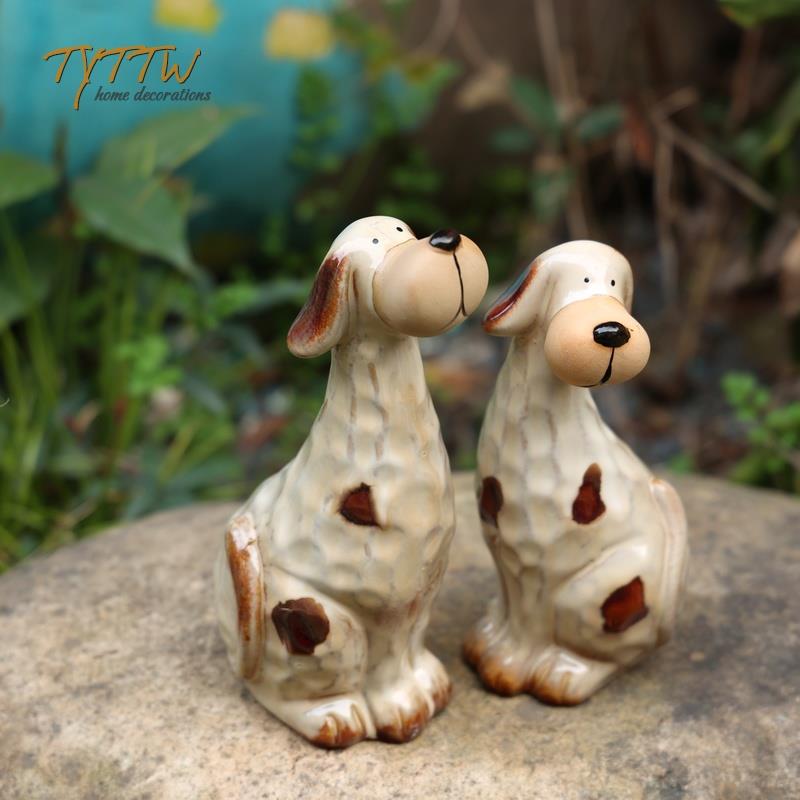 可爱陶瓷素色狗狗庭院创意桌面摆件杂货花园装饰朋友送礼