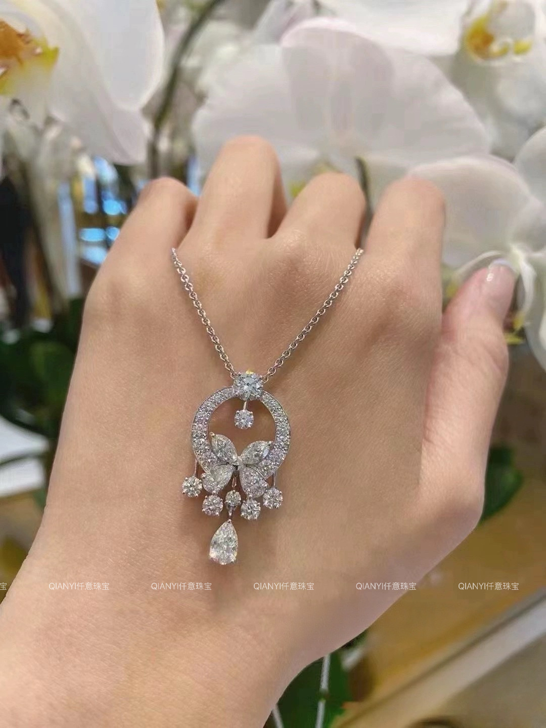 QIANYI仟意珠宝【轻奢系列】幻影蝴蝶捕梦网千金风满钻锁骨项链