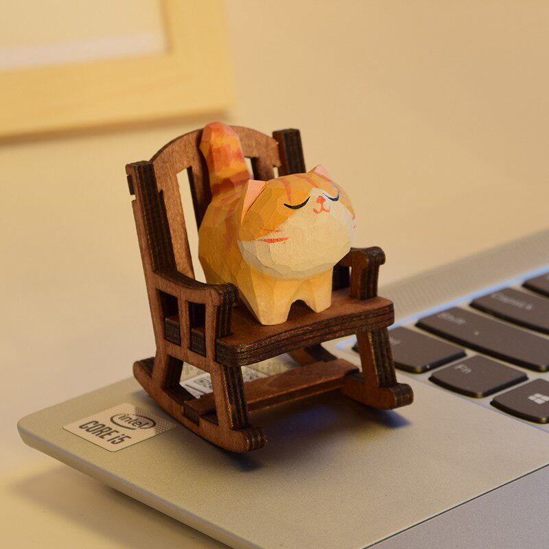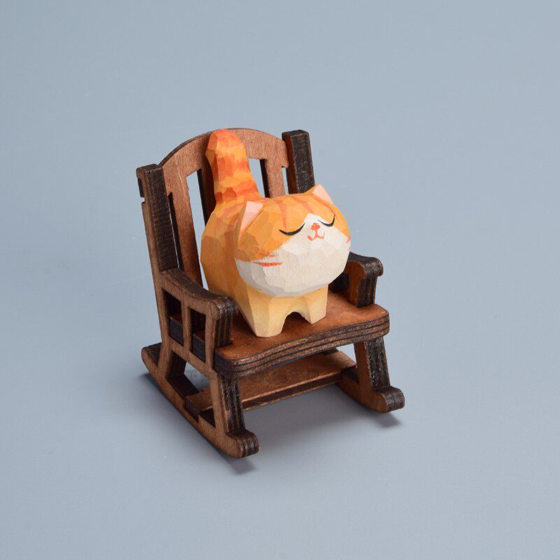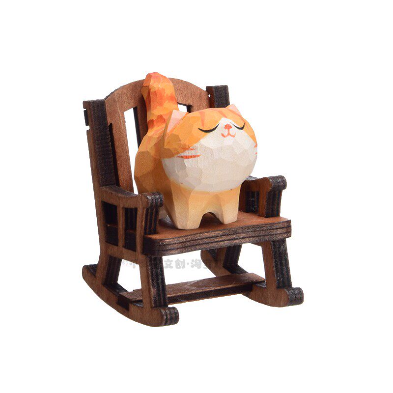 创意木雕胖橘摇椅摆件办公桌面解压治愈可爱装饰生日礼物送男朋友