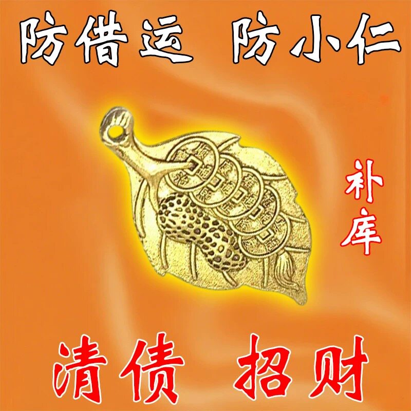 {放枕头下}黄铜一叶生财钥匙扣汽车挂福禄纯铜挂饰礼品挂件