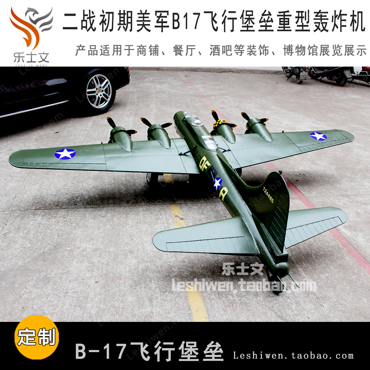 二战美军B17飞行堡垒重型轰炸机B-17创意美陈摆件摆设空中吊饰挂