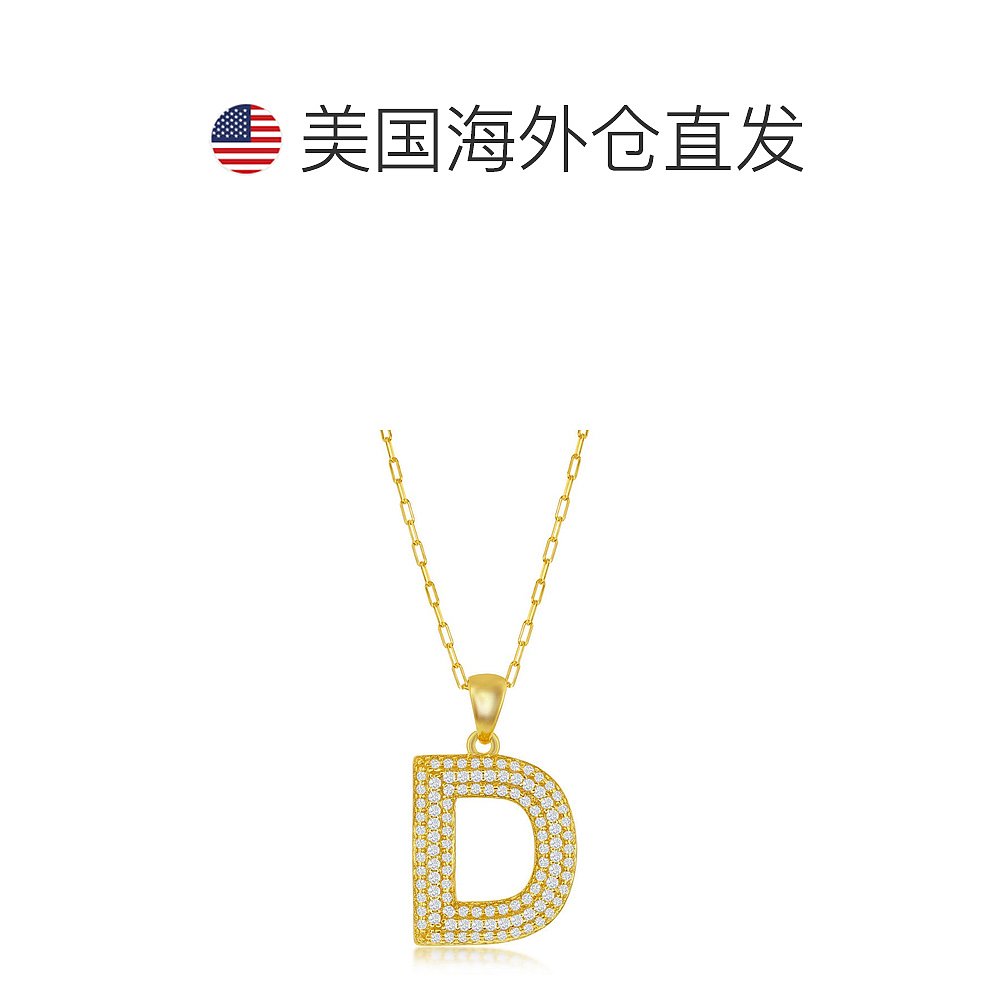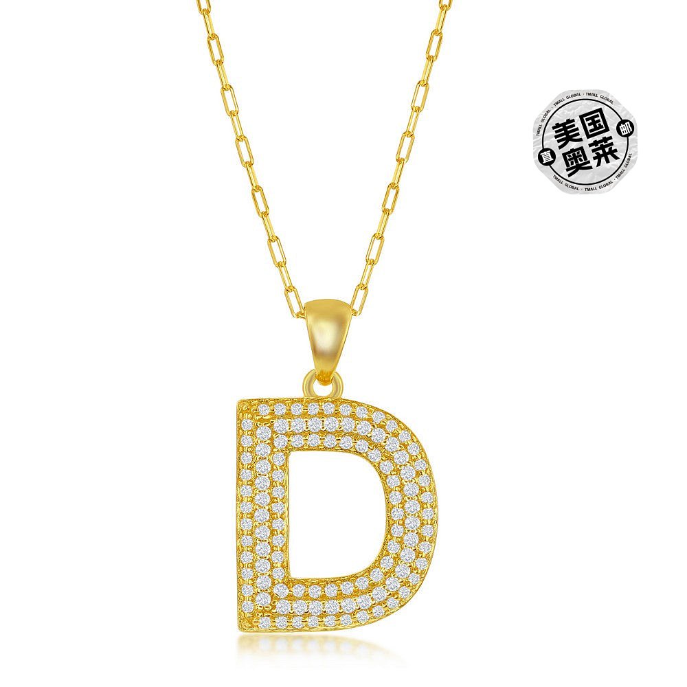 自营 simona纯银 Micro Pave CZ \'J\' 块首字母带回形针链 - 镀