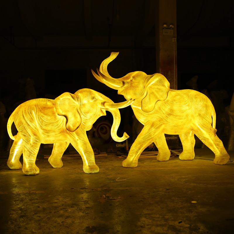 大象雕塑玻璃钢彷真模型户外公园景区动物园装饰发光大型动物摆件