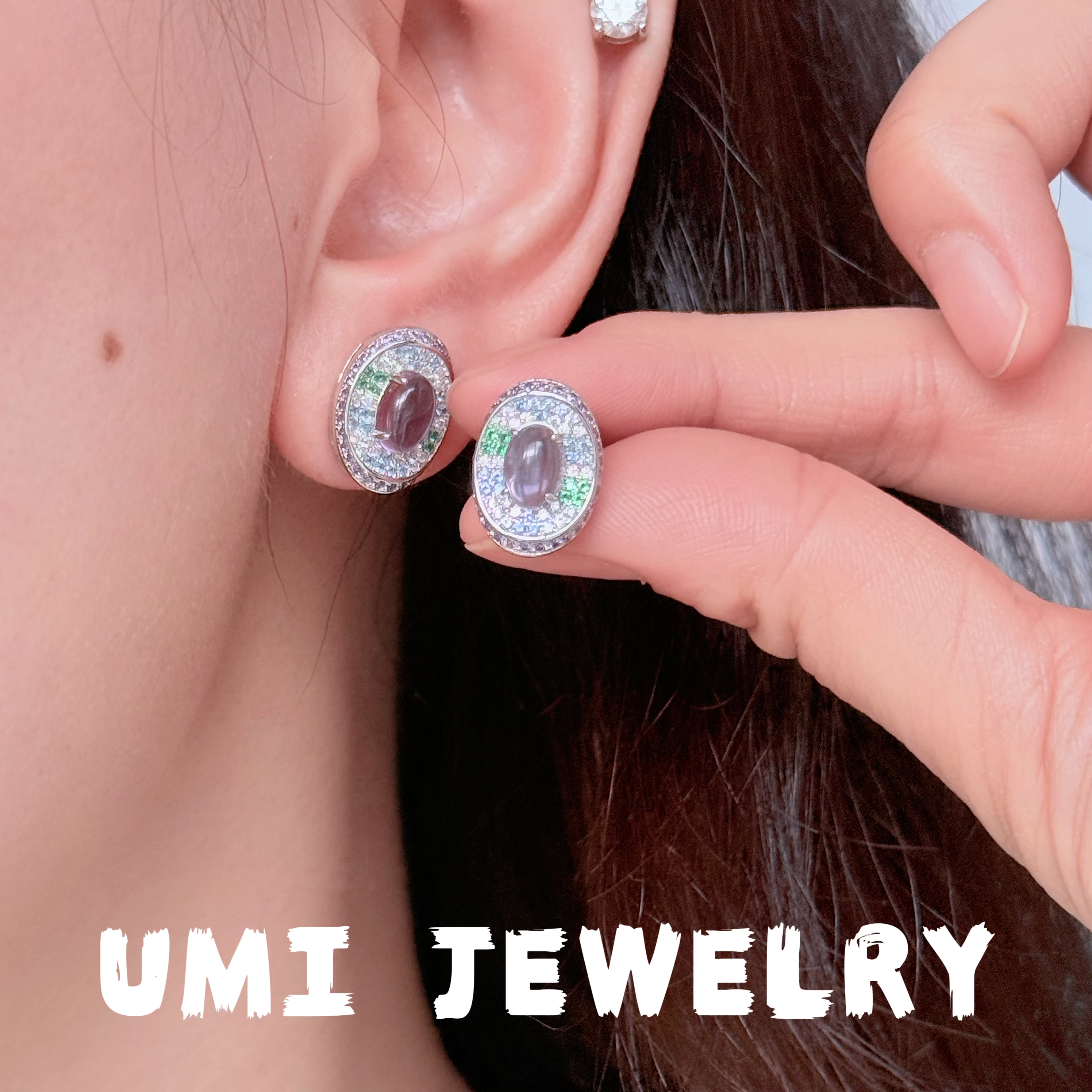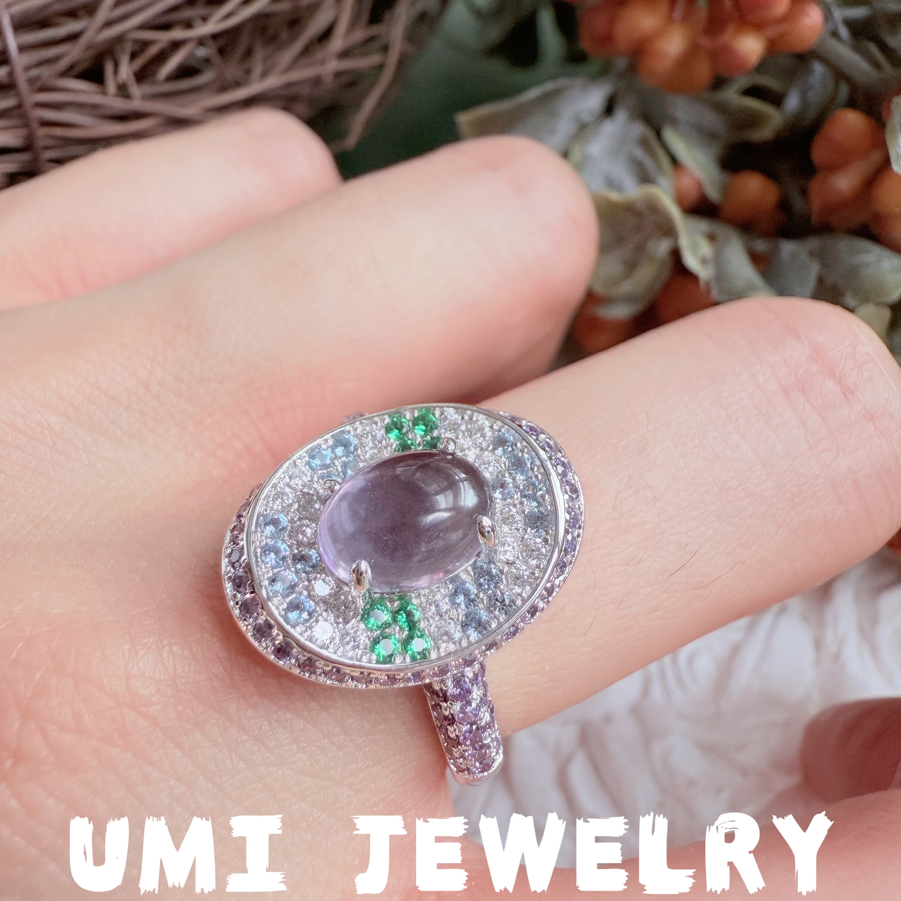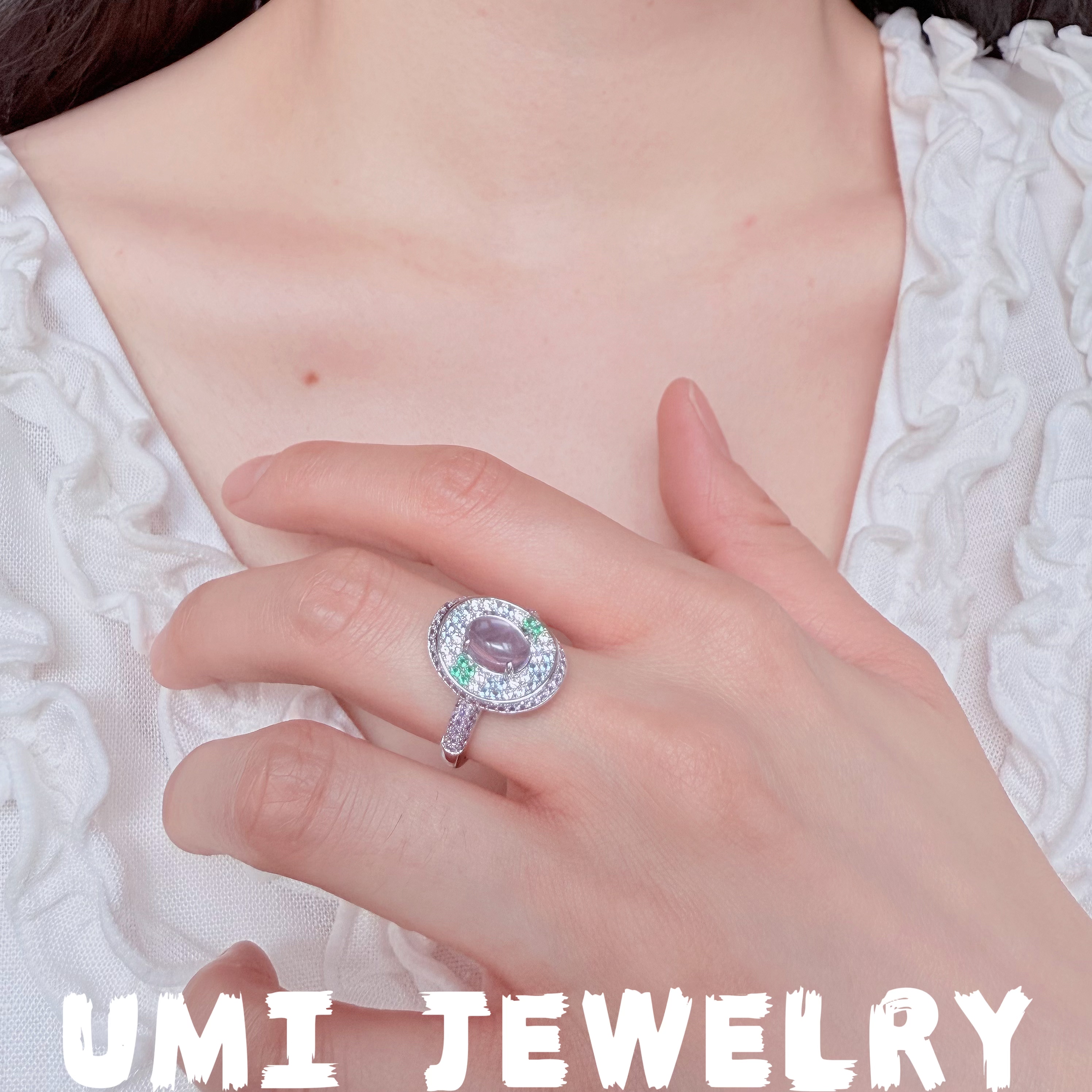 UMI家轻珠宝/S925银镀k金·天然紫水晶彩钻花园戒指耳钉轻奢高级