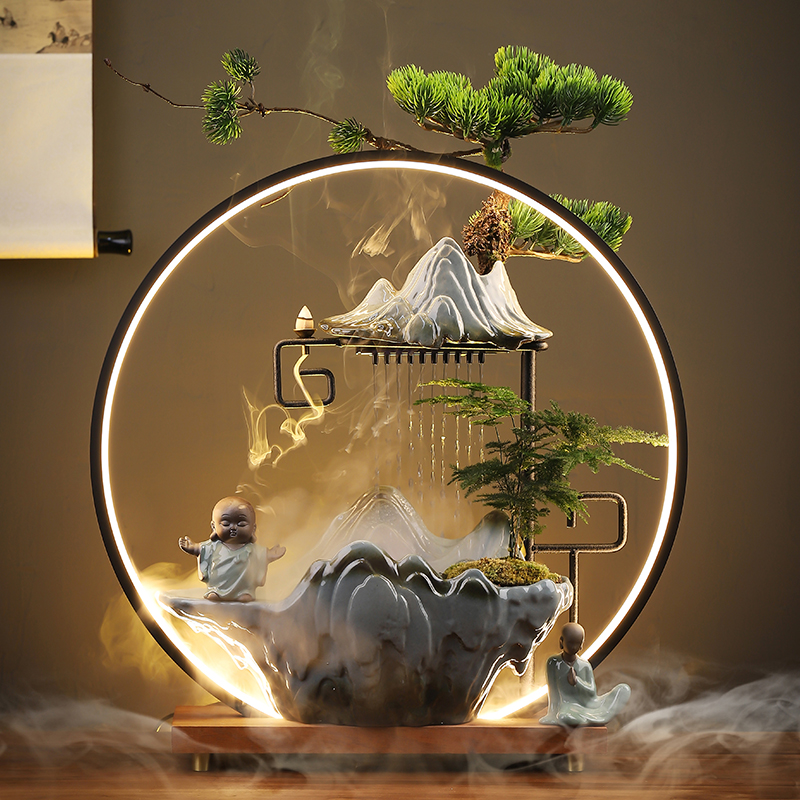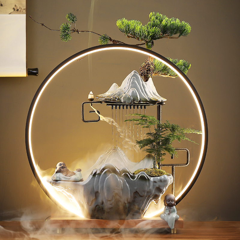 创意中式流水生财摆件陶瓷循环水家居加湿喷泉办公室玄关业礼品