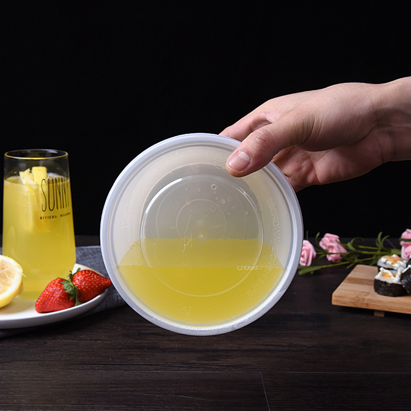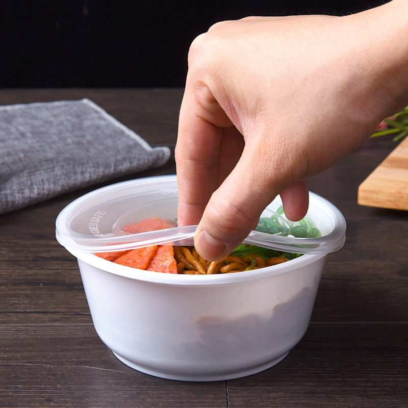 圆形一次性碗1000ml食品级塑料打包餐盒汤碗加厚白色快餐外卖饭盒