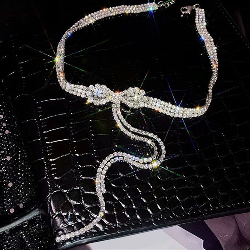 新款蝴蝶c结项链少女ins颈链满钻简约时尚气质个性饰品