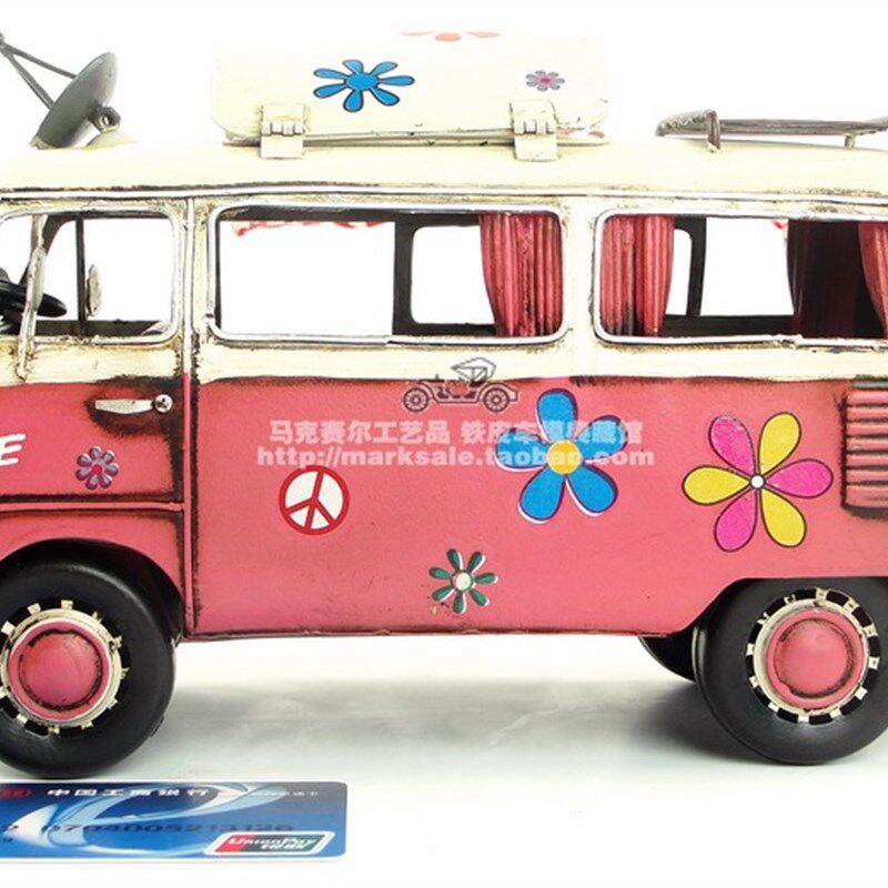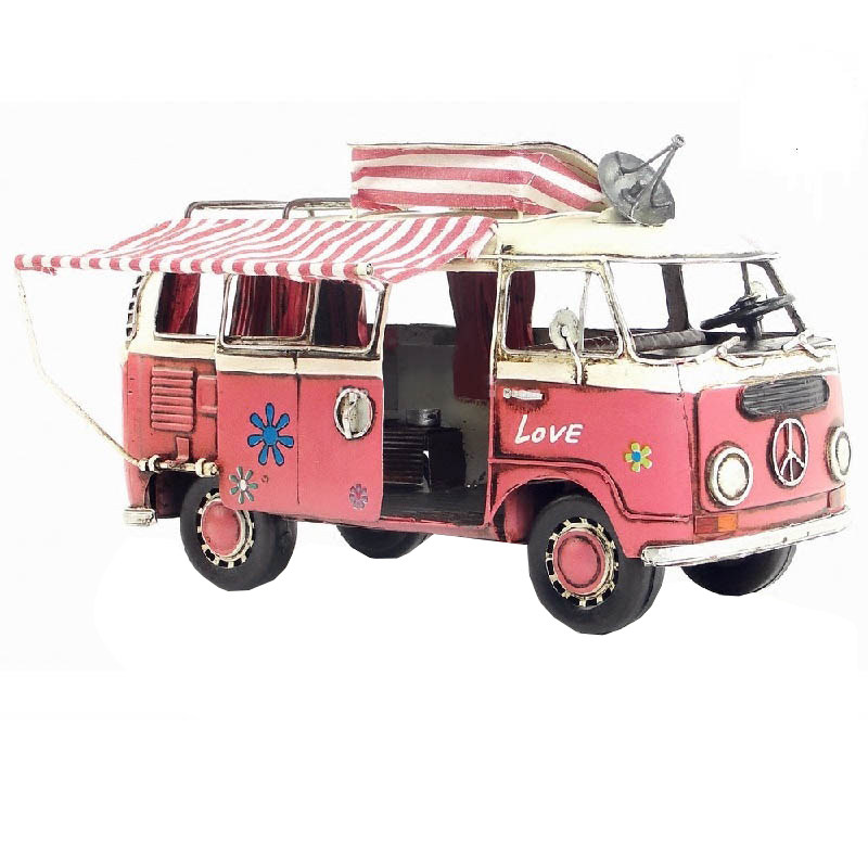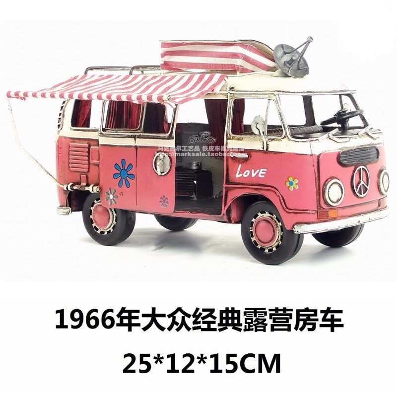 复古铁艺大众巴士露营车房车模型老爷车生日礼物超萌装饰品工艺品