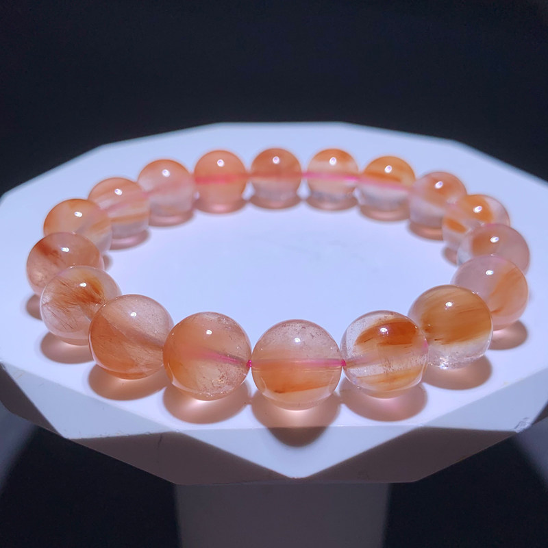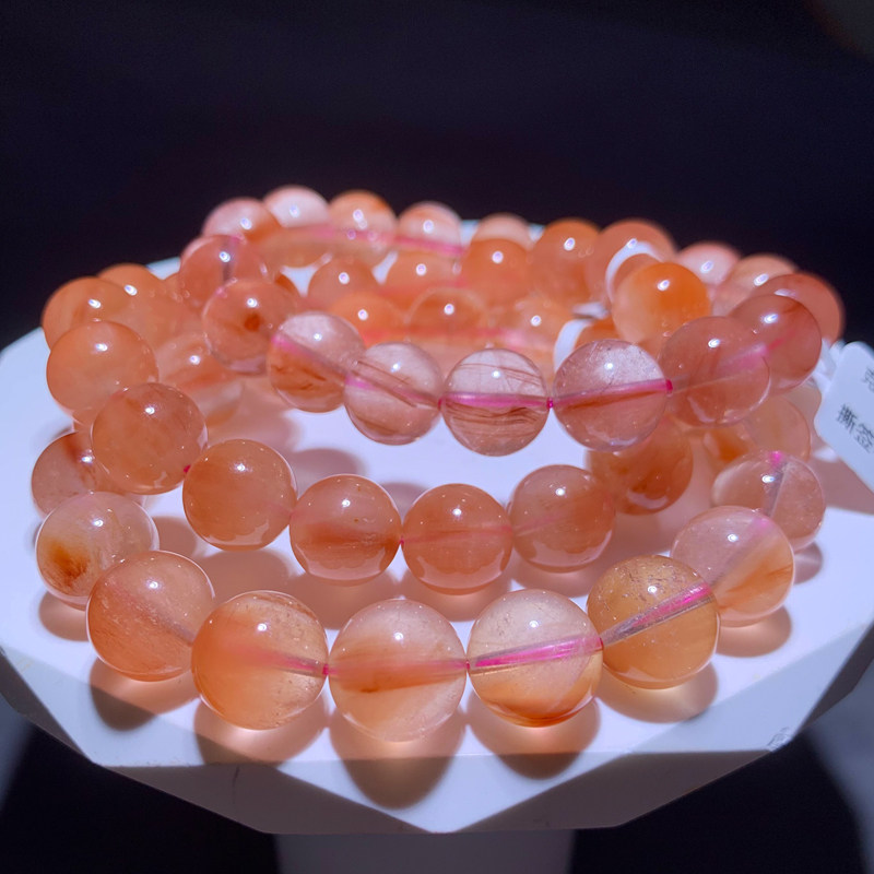 天然橘兔毛顺发手链单圈橘粉兔毛水晶手串送礼物男女一物一图