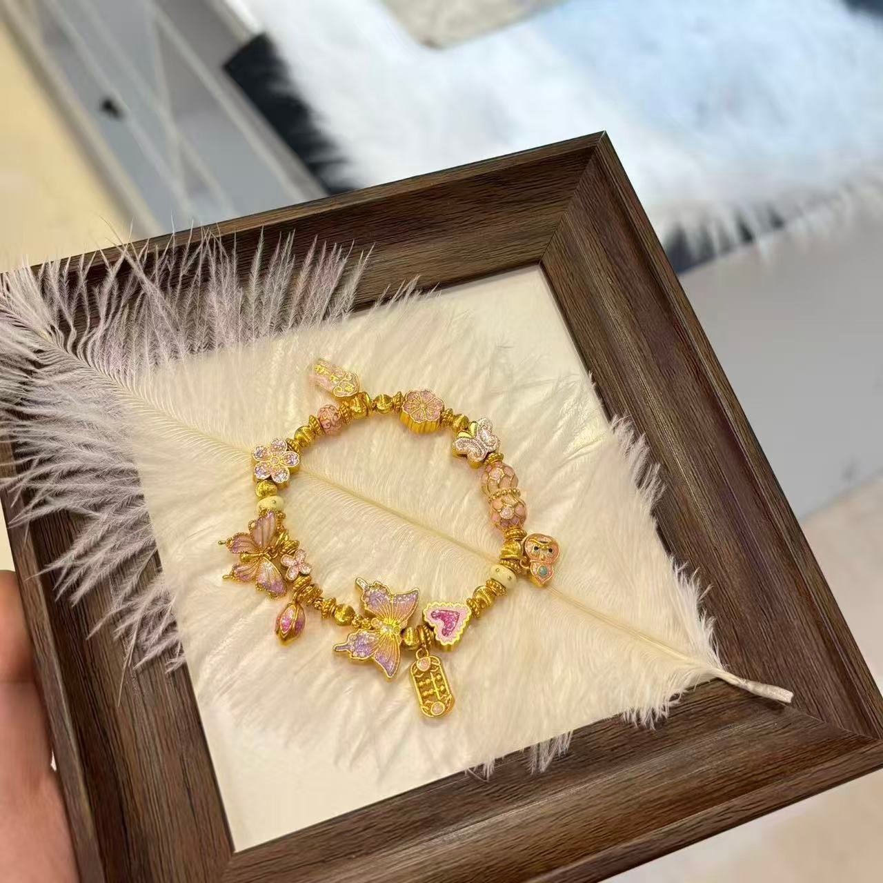 卡纯诗金店同款沙金珐琅彩蝴蝶算盘珠手链女手环手串送礼新款招财