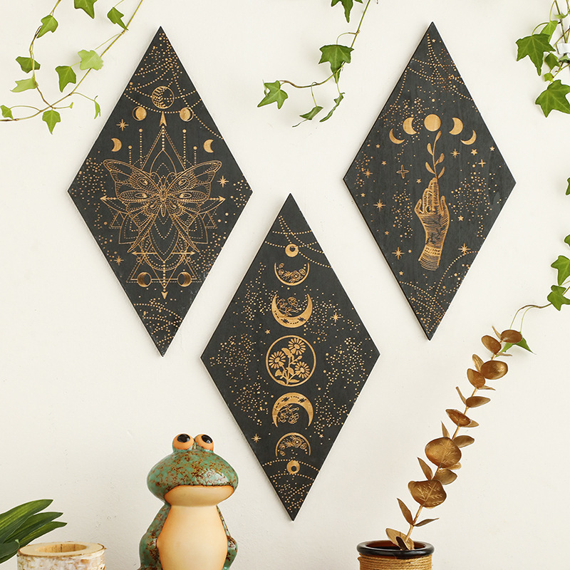 跨境几何雕刻图形菱形木质三角壁架 简约家居客厅墙面挂件