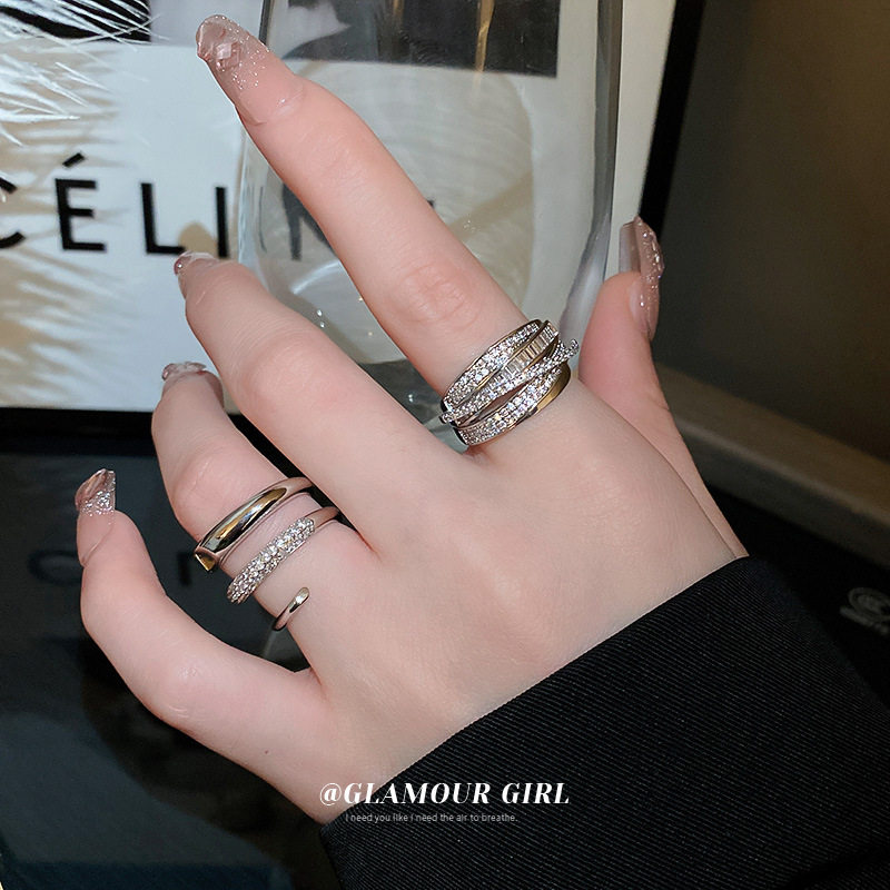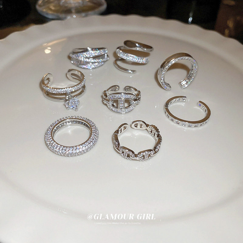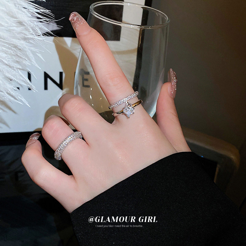 韩国个性设计锆石猪鼻蛇形爱心双层开口戒指金属冷淡风食指戒手饰