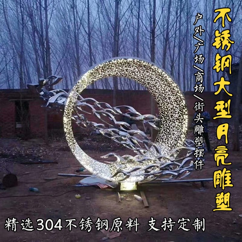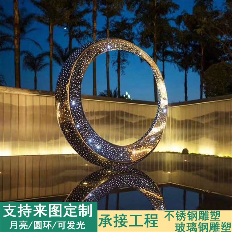 极速不锈钢圆环雕塑定制户外v景观园林月亮摆件金属鹿镜面镂空球