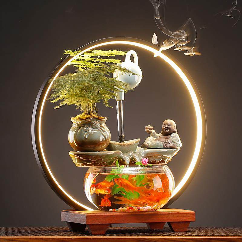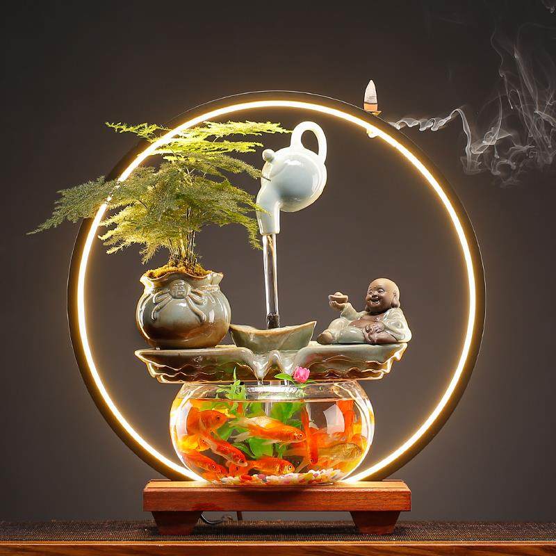 流水摆件创意生财悬壶鱼缸循环水客厅办公室桌面装饰招财开业礼品