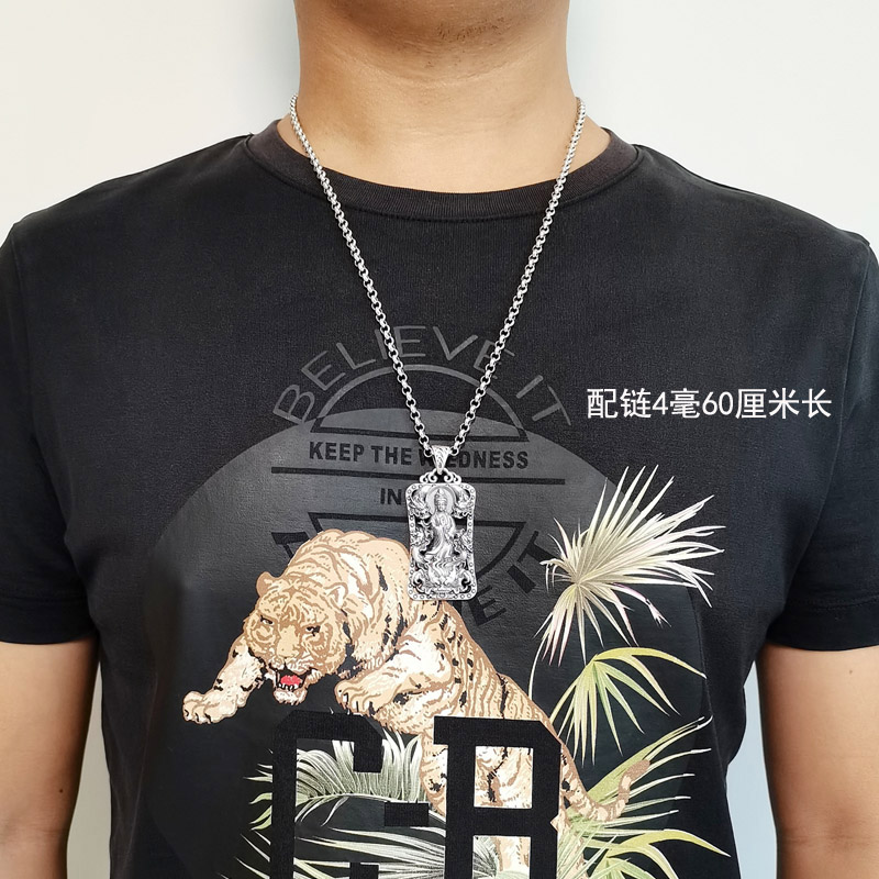 观音999纯银项链男粗毛衣链长款女大吊坠2025年新款正品配饰潮