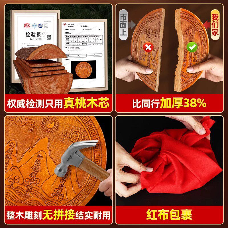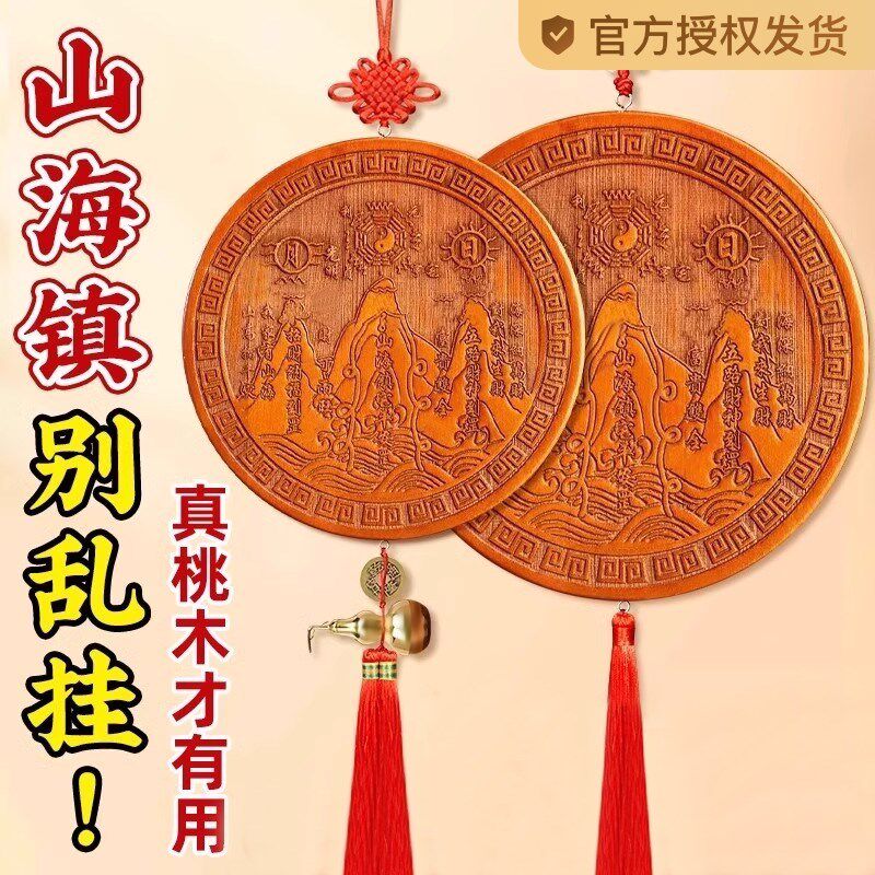 真桃木山海镇化解八卦镜木雕挂件房屋室内室外凸镜山海图装饰摆件