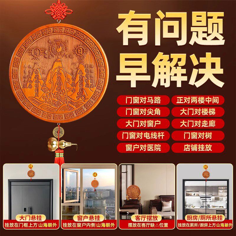当前位置:首页>商品详情>真桃木山海镇化解八卦镜木雕挂件房屋室内室外凸镜山海图装饰摆件