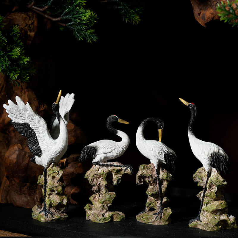仿真小白鹤摆件假山鱼缸盆景景观造景仙鹤小摆设禅意客厅飞鹤装饰