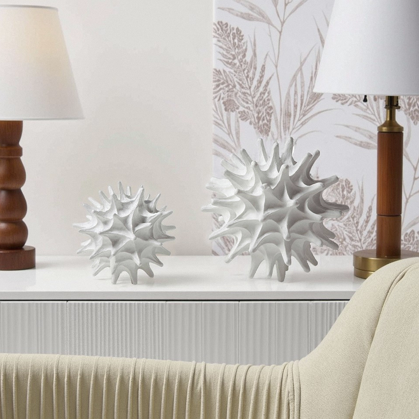 抽象后现代时尚北欧风格哑光白色海胆造型针刺球摆件家居家具饰品