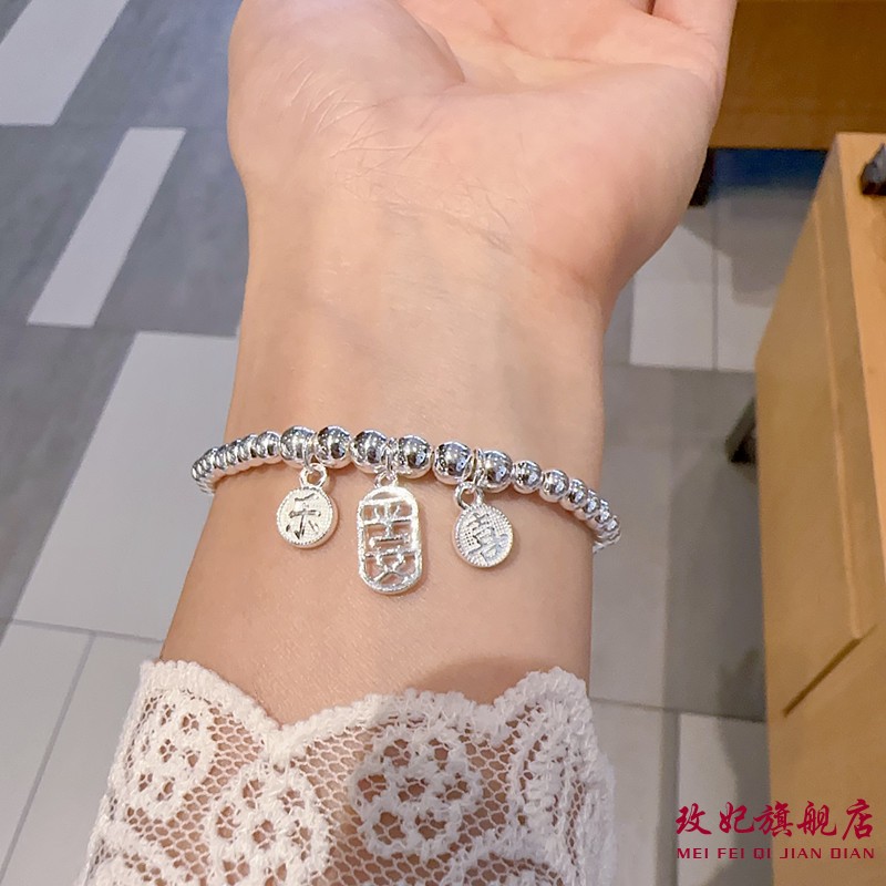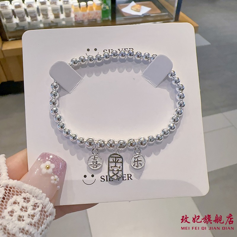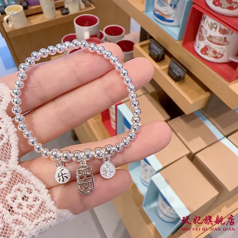玫妃正生平安喜乐足银s925纯银手链时尚百搭银珠手串送女友闺蜜
