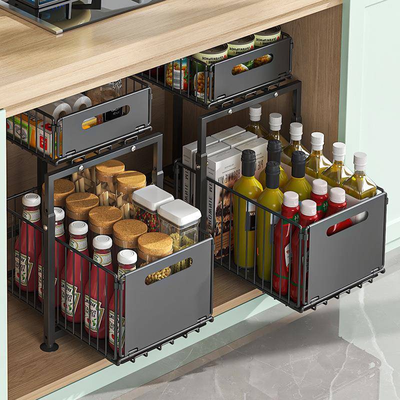 厨房水槽下置物架双层可抽拉式收纳架橱柜内置层架浴室抽屉整理架