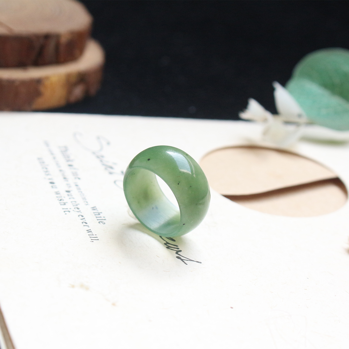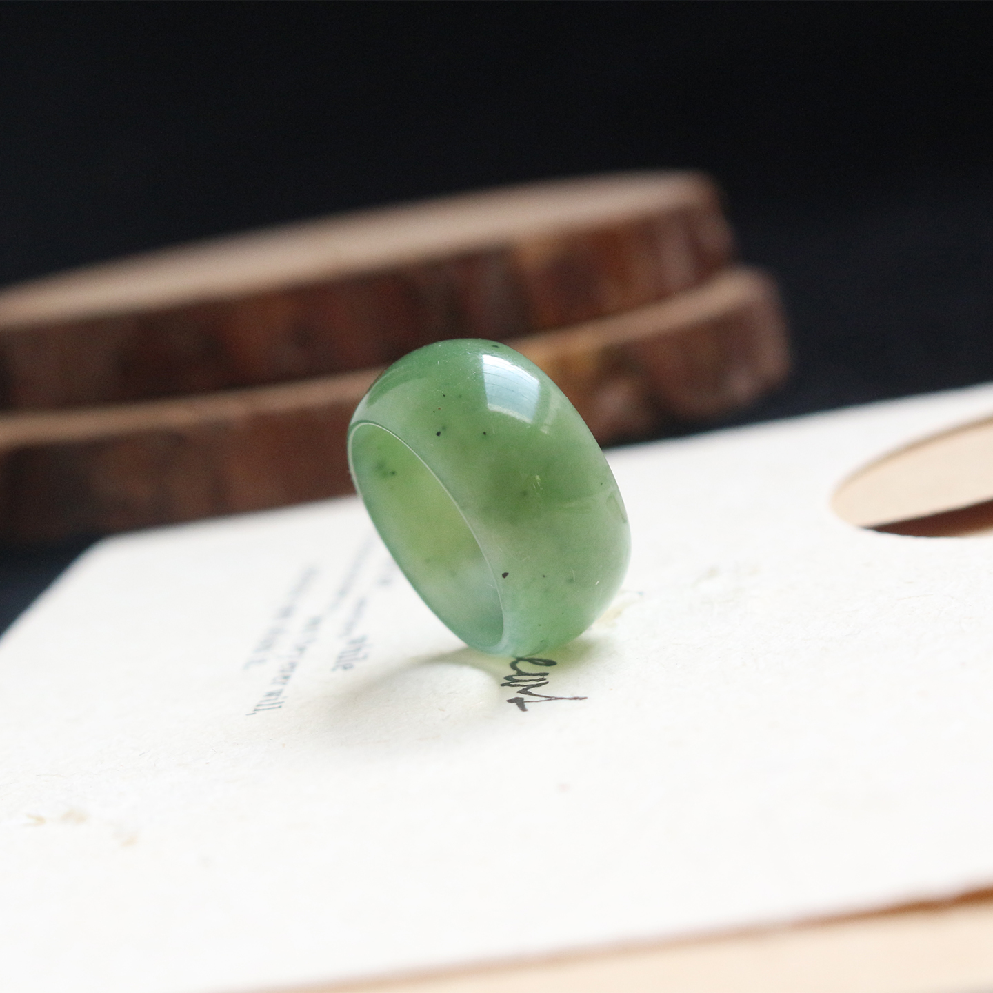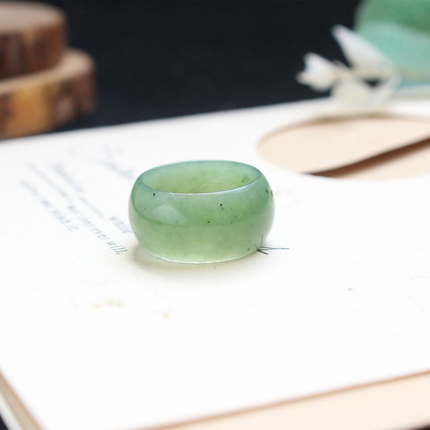 和田玉碧玉苹果绿戒指宽版16mm轮胎戒指女士简约气质尾戒新品特惠