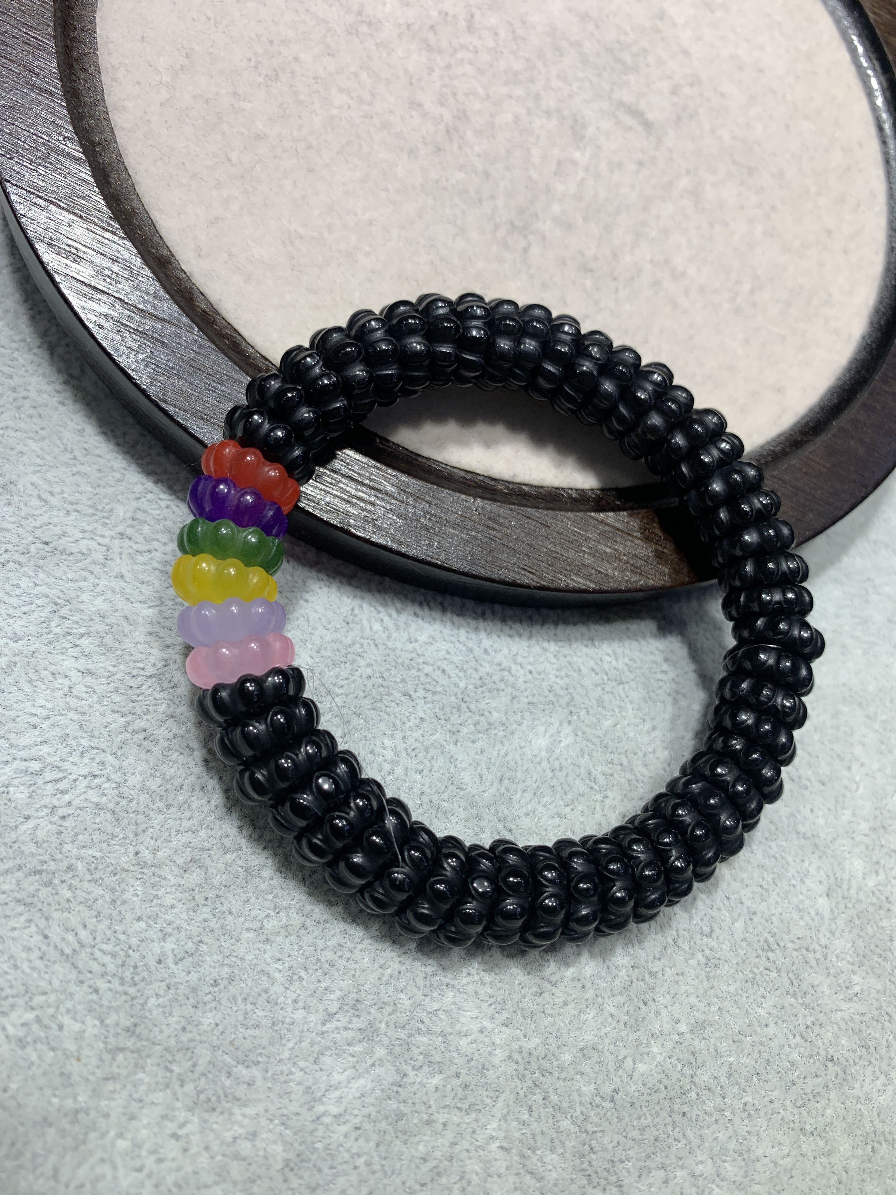 黑玛瑙莲花单圈手串精工雕刻手串文玩配饰饰品diy项链手链