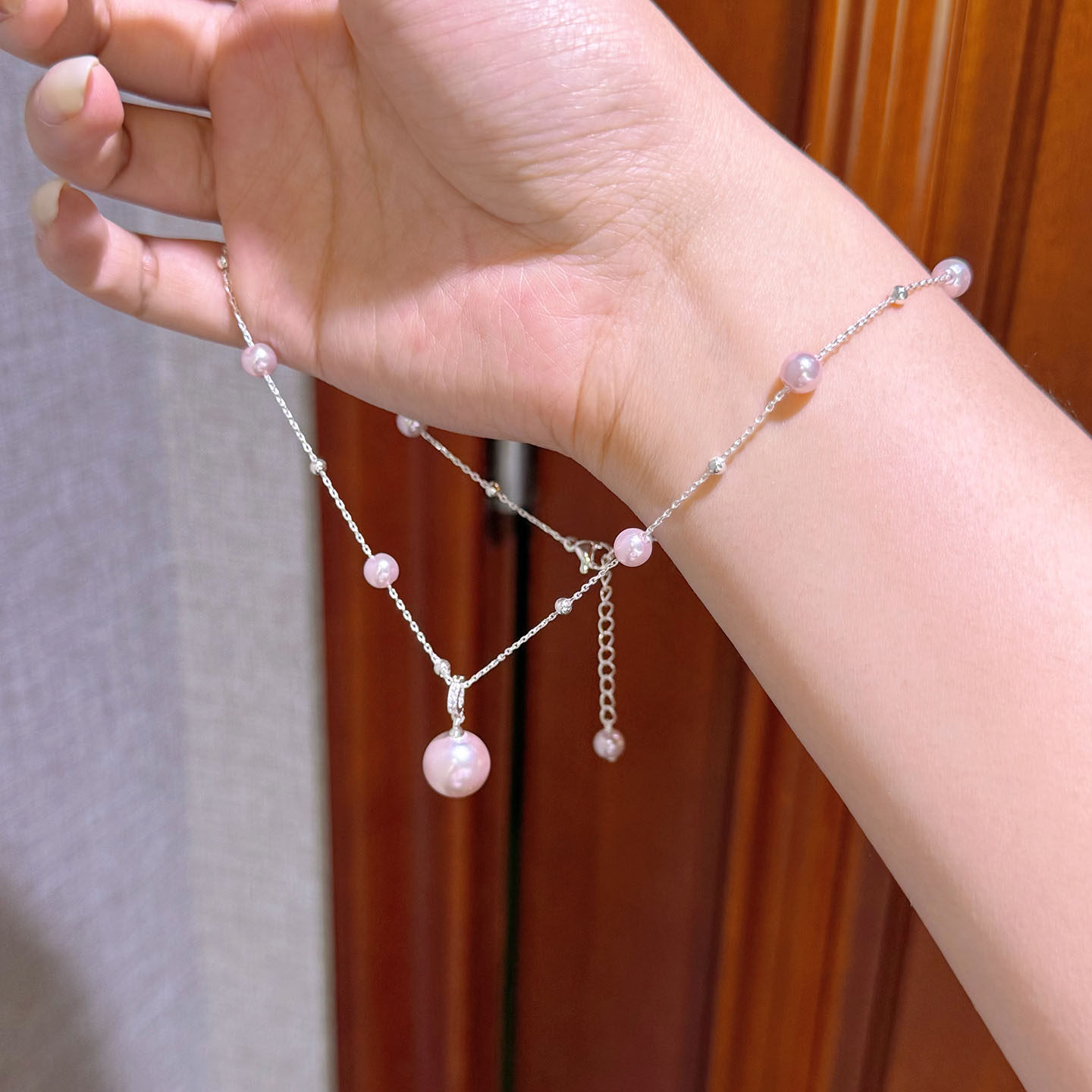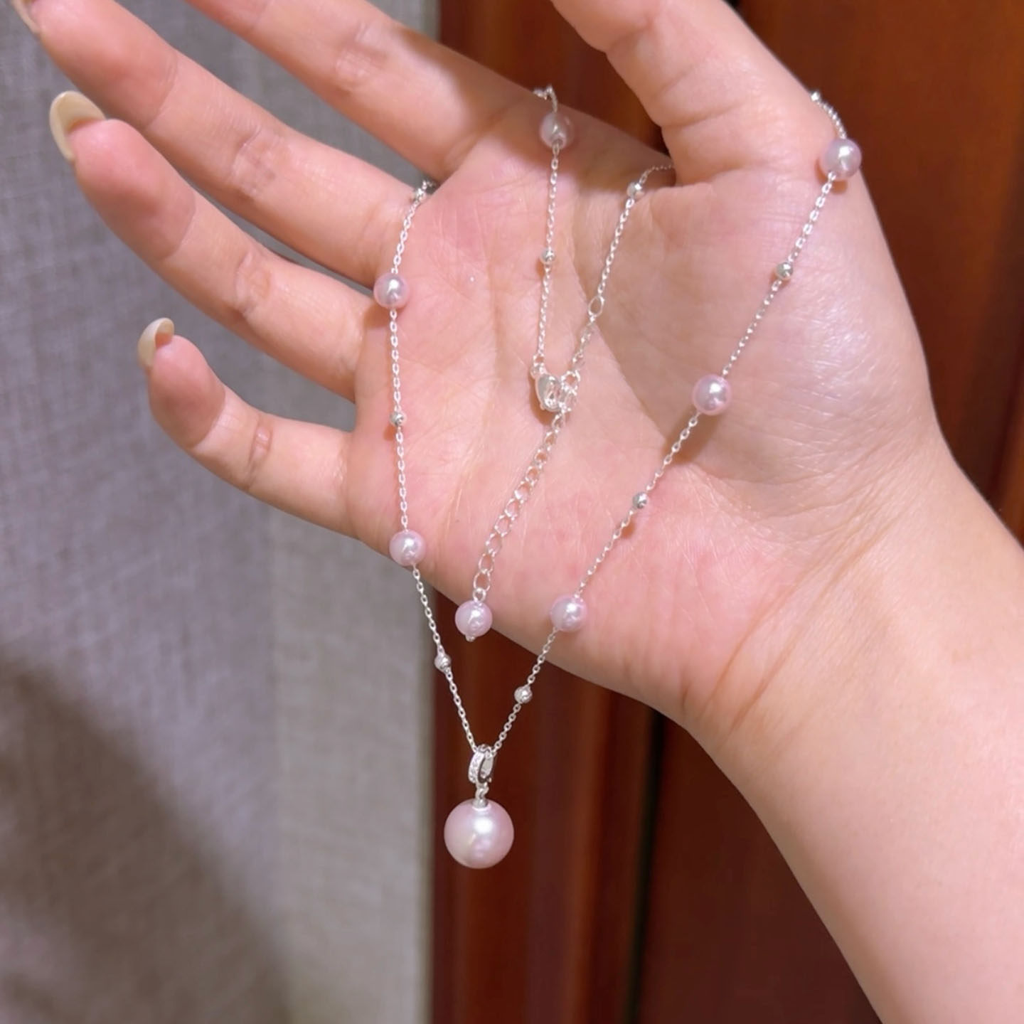 浅紫色珍珠吊坠锁骨链女2026年新款潮气质百搭轻奢高级感项链颈链