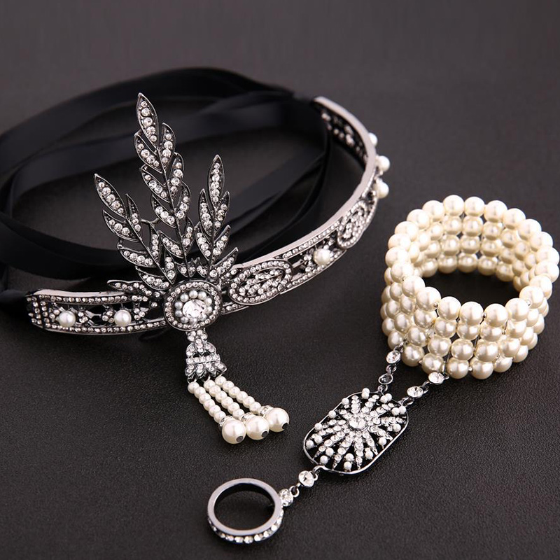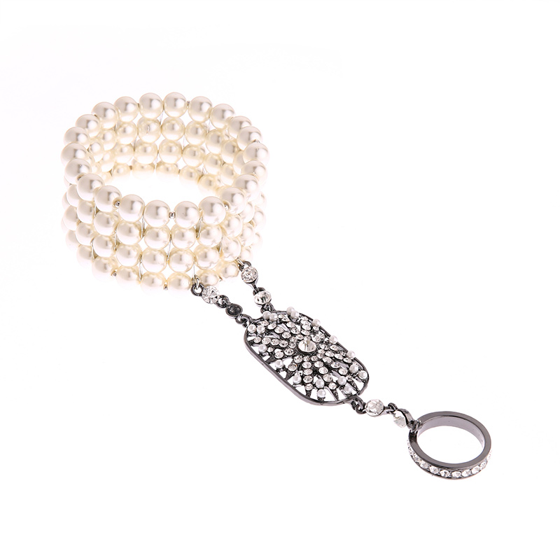 了不起的盖茨比同款手链中古戒指一体式珍珠手串小众复古礼服手环