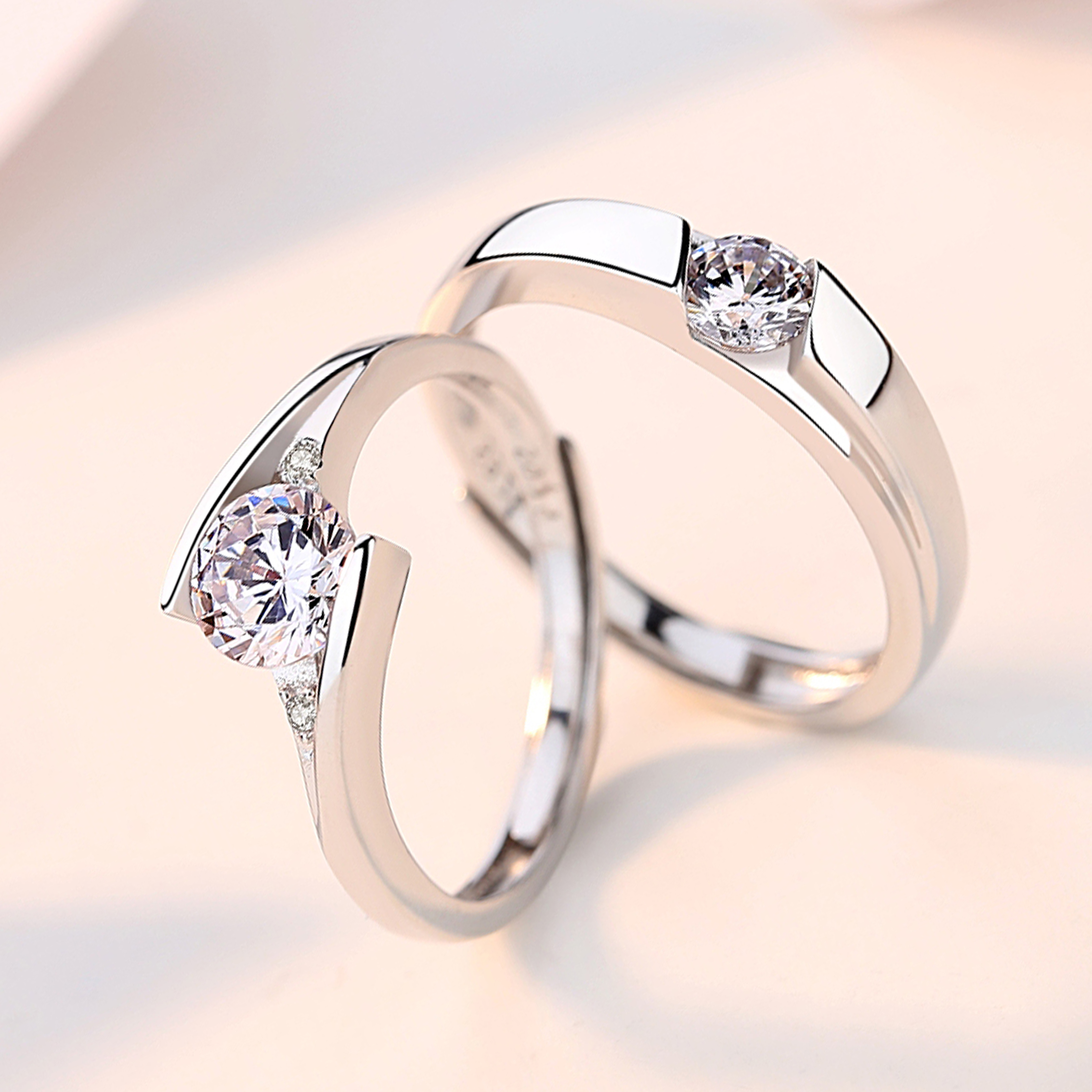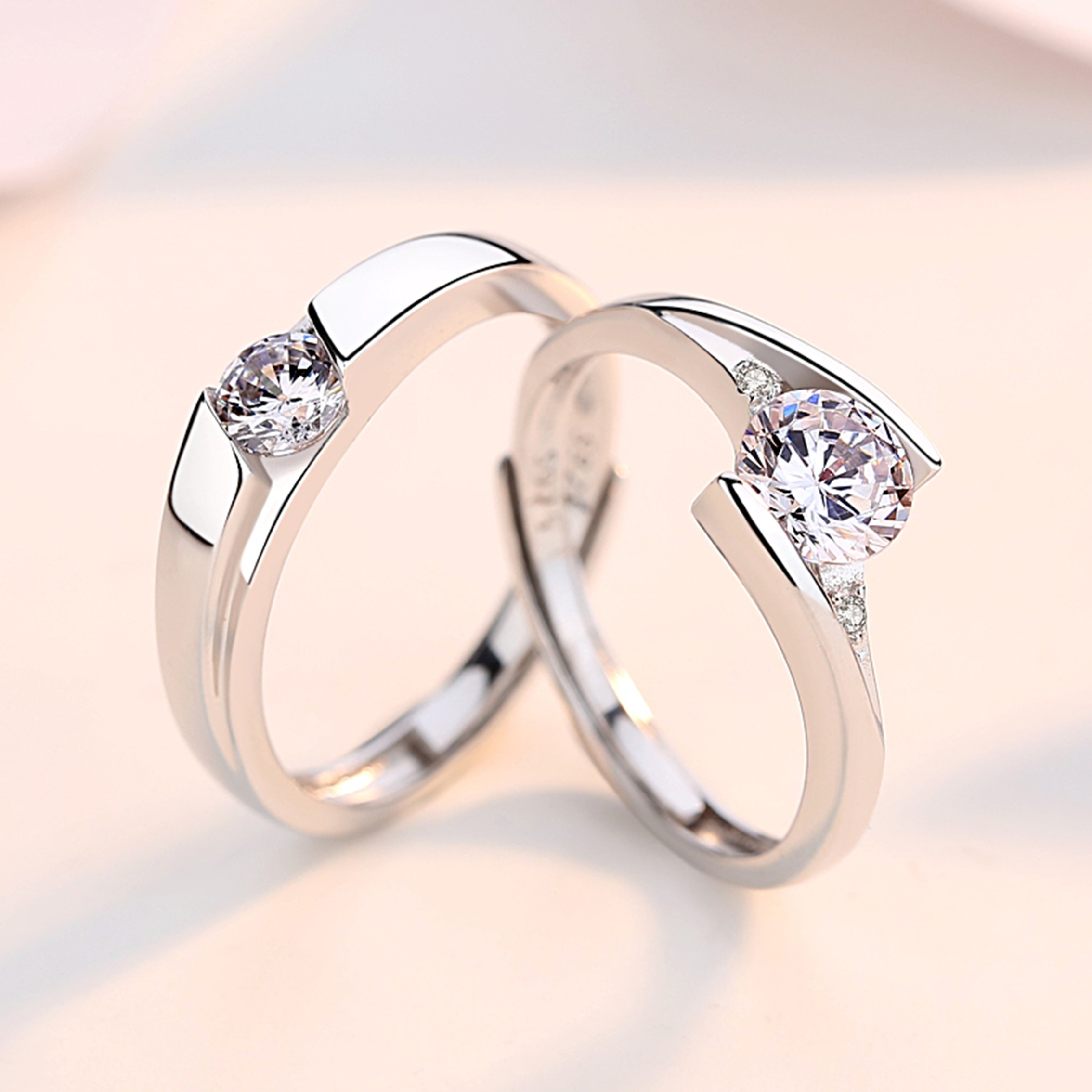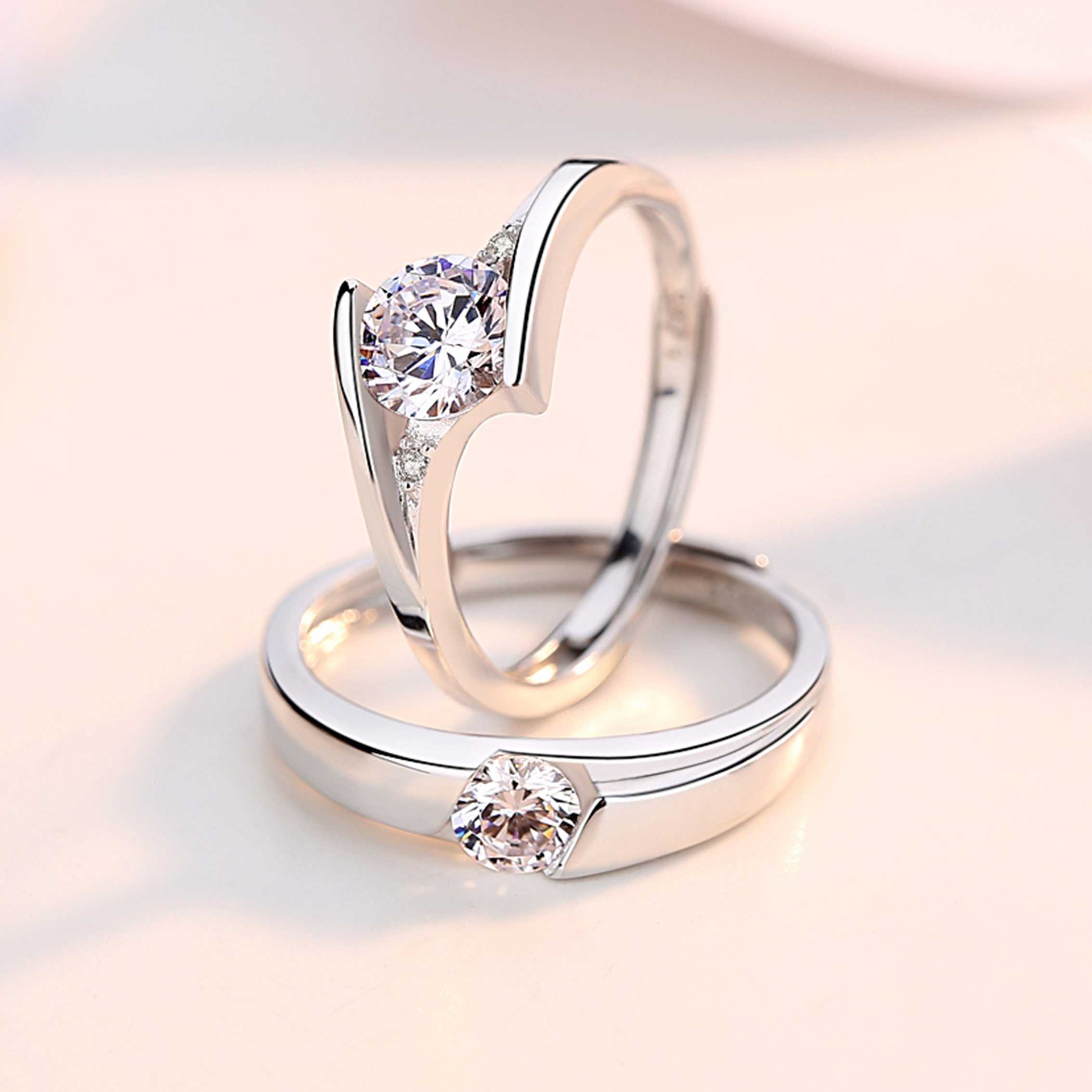 纯银莫桑石戒指女一对大钻戒男士结婚求婚订婚仿真钻石情侣对戒