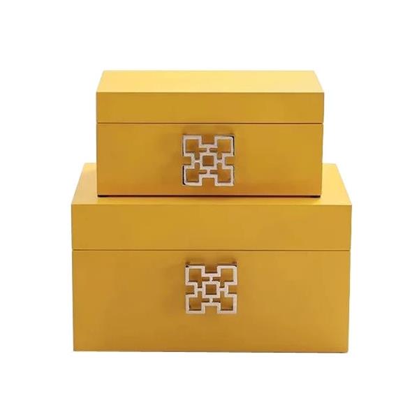 现代简约新中式黄/白/橙色木质烤漆软装板房摆设家用大容量收纳盒