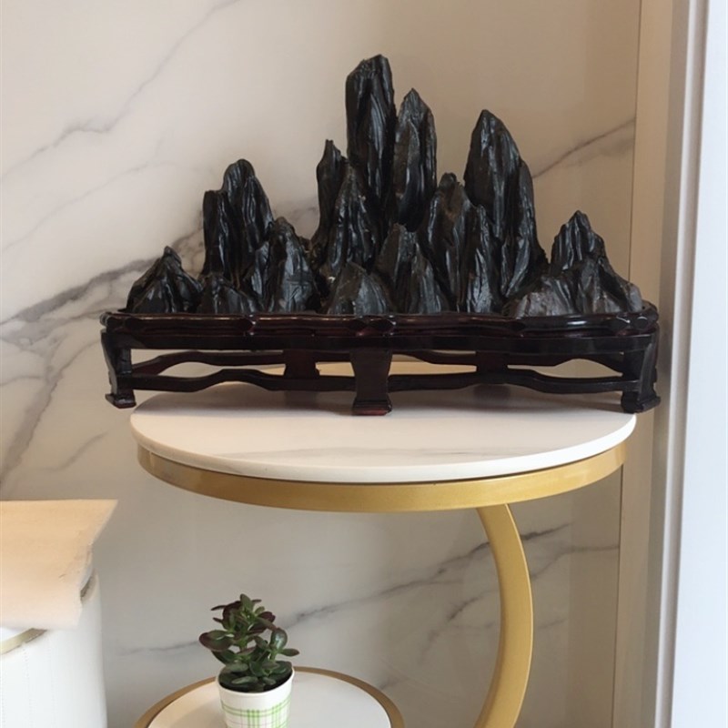 风水石天然原石长辈送礼孤品灵璧奇石真石书柜新中式摆件背有靠山
