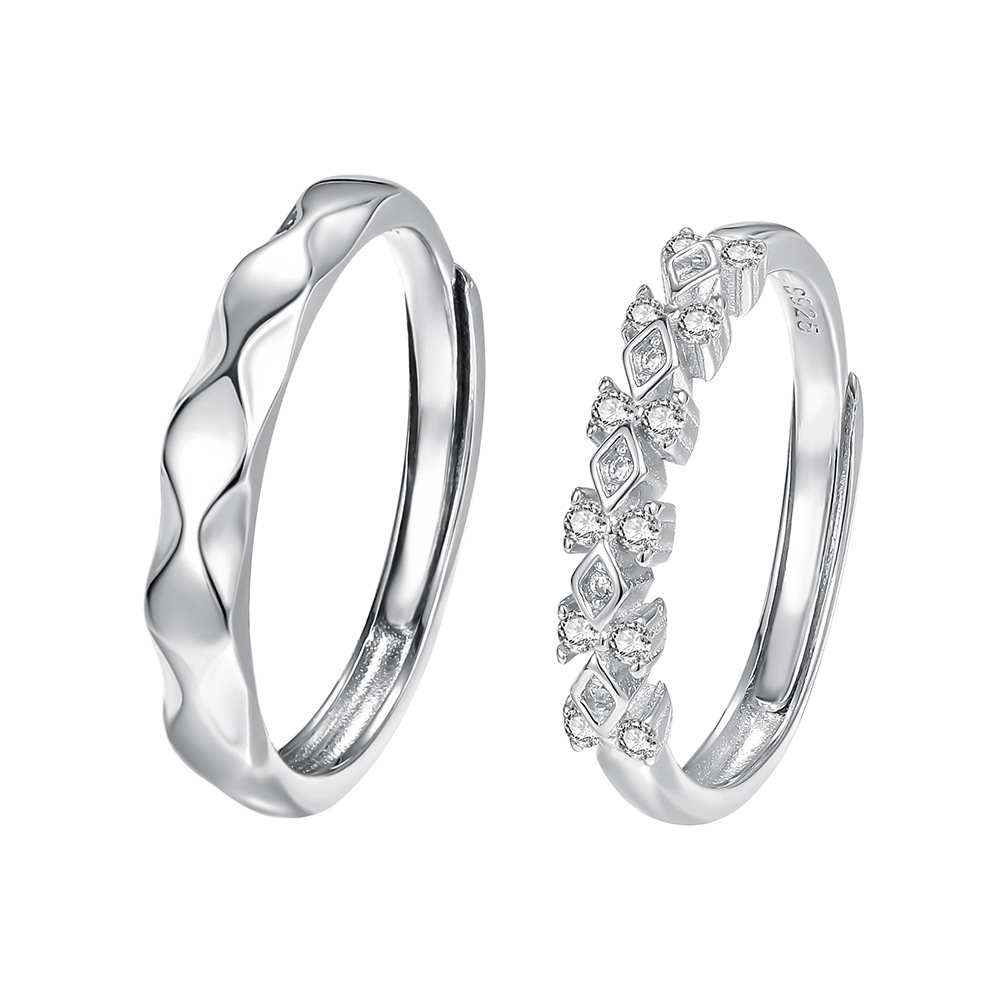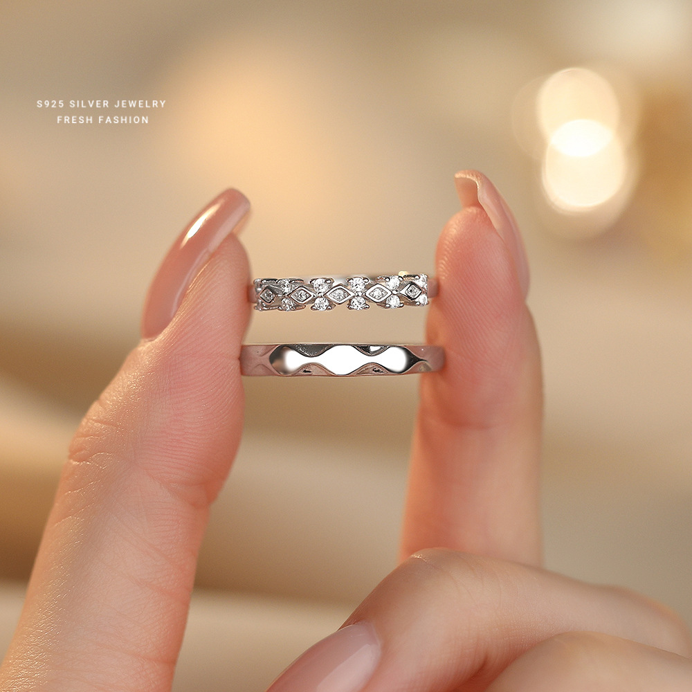 缘定双方情侣开口戒指S925纯银菱方微镶锆石对戒七夕情人节礼物