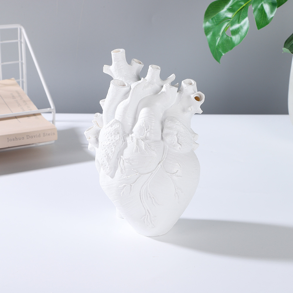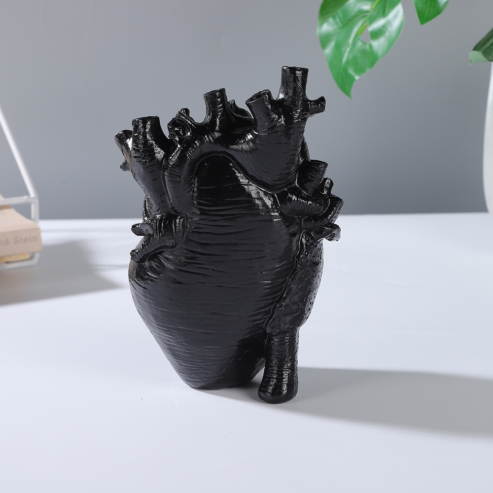 跨境创意心脏造型树脂工艺品摆件黑白双色花瓶家居桌面插花
