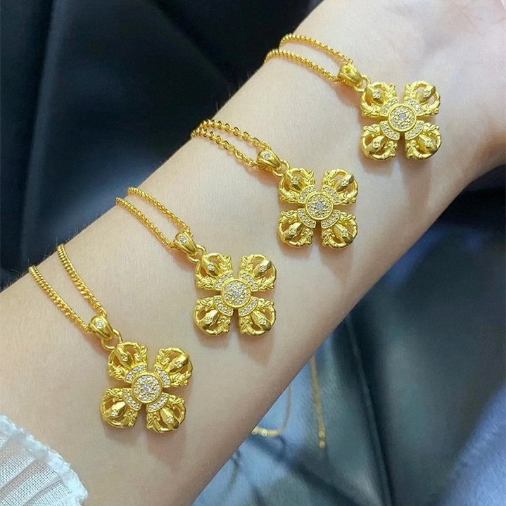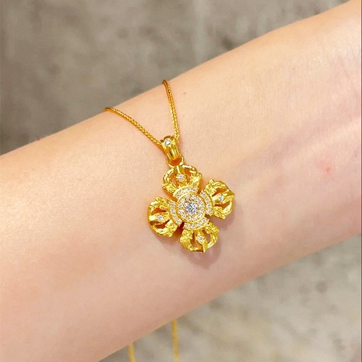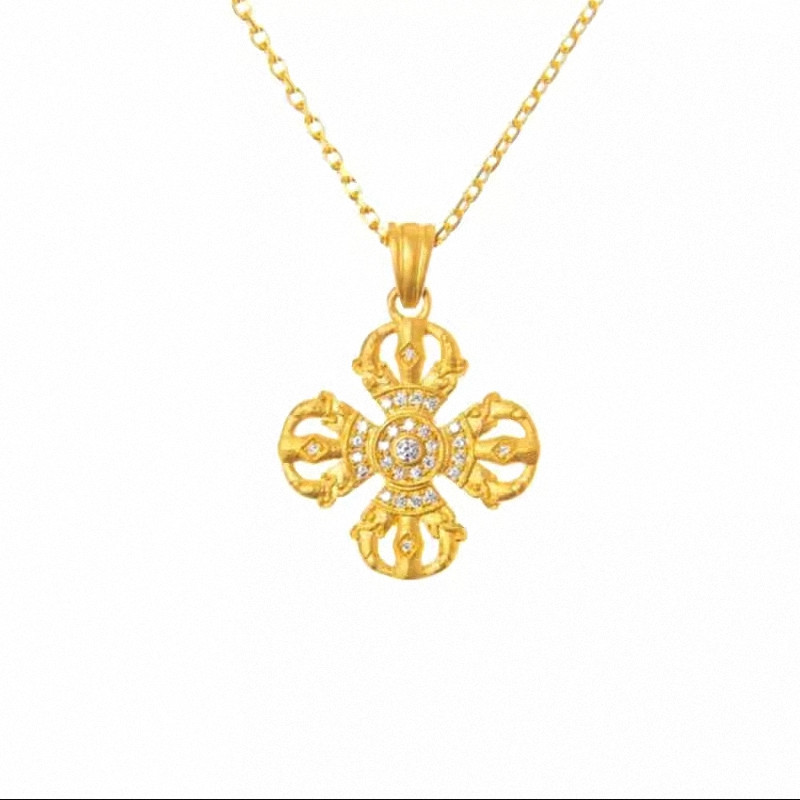 古法金十字架金刚杵项链纯银镀黄金色带钻锁骨链个性高级男女情侣