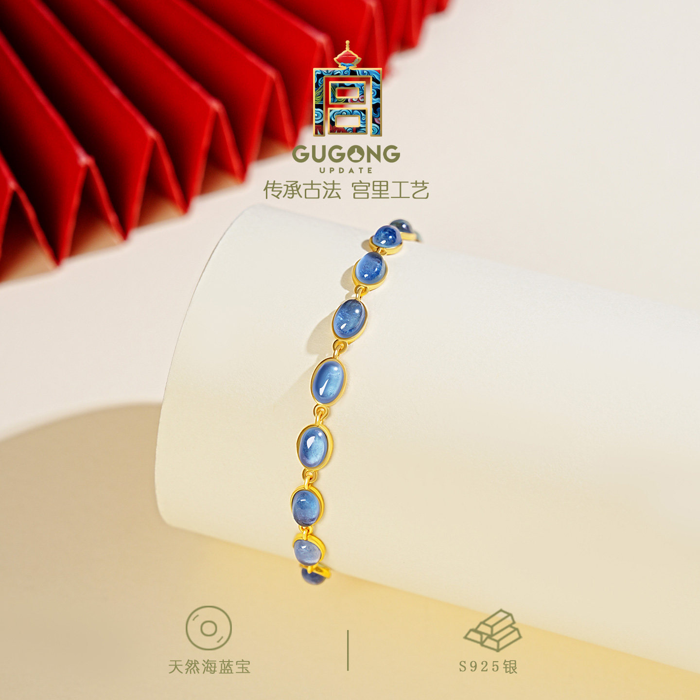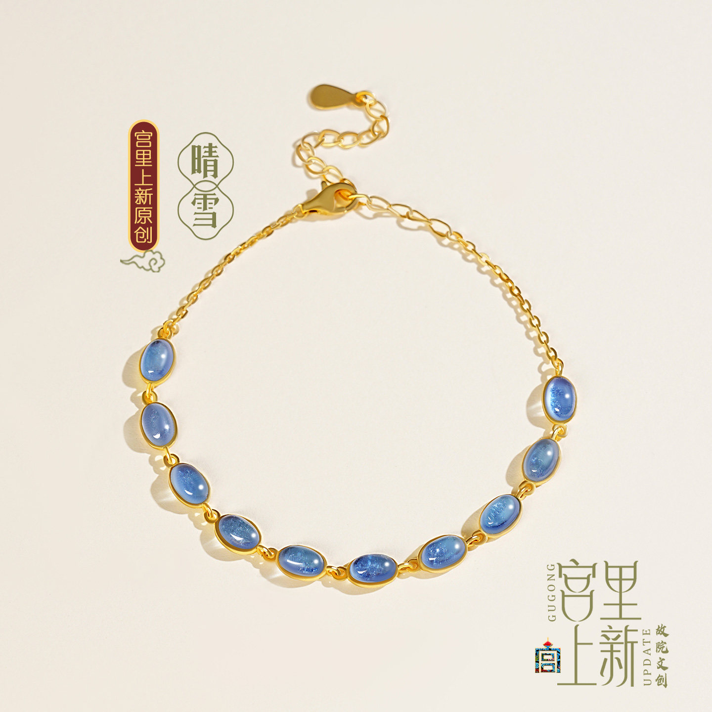 母亲节礼物宫里上新海蓝宝手链女款天然水晶纯银手饰生日送妈妈