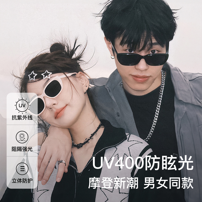 CAPONI猫眼墨镜粉框方圆显脸小太阳镜海边防晒防紫外线高级感眼镜